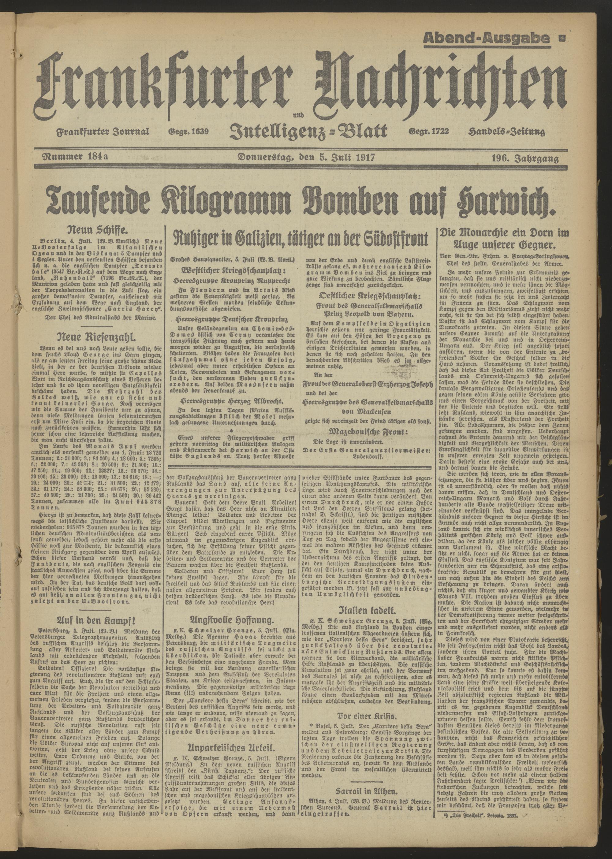 05.07.1917 Abend-Ausgabe = Nr. 184 a