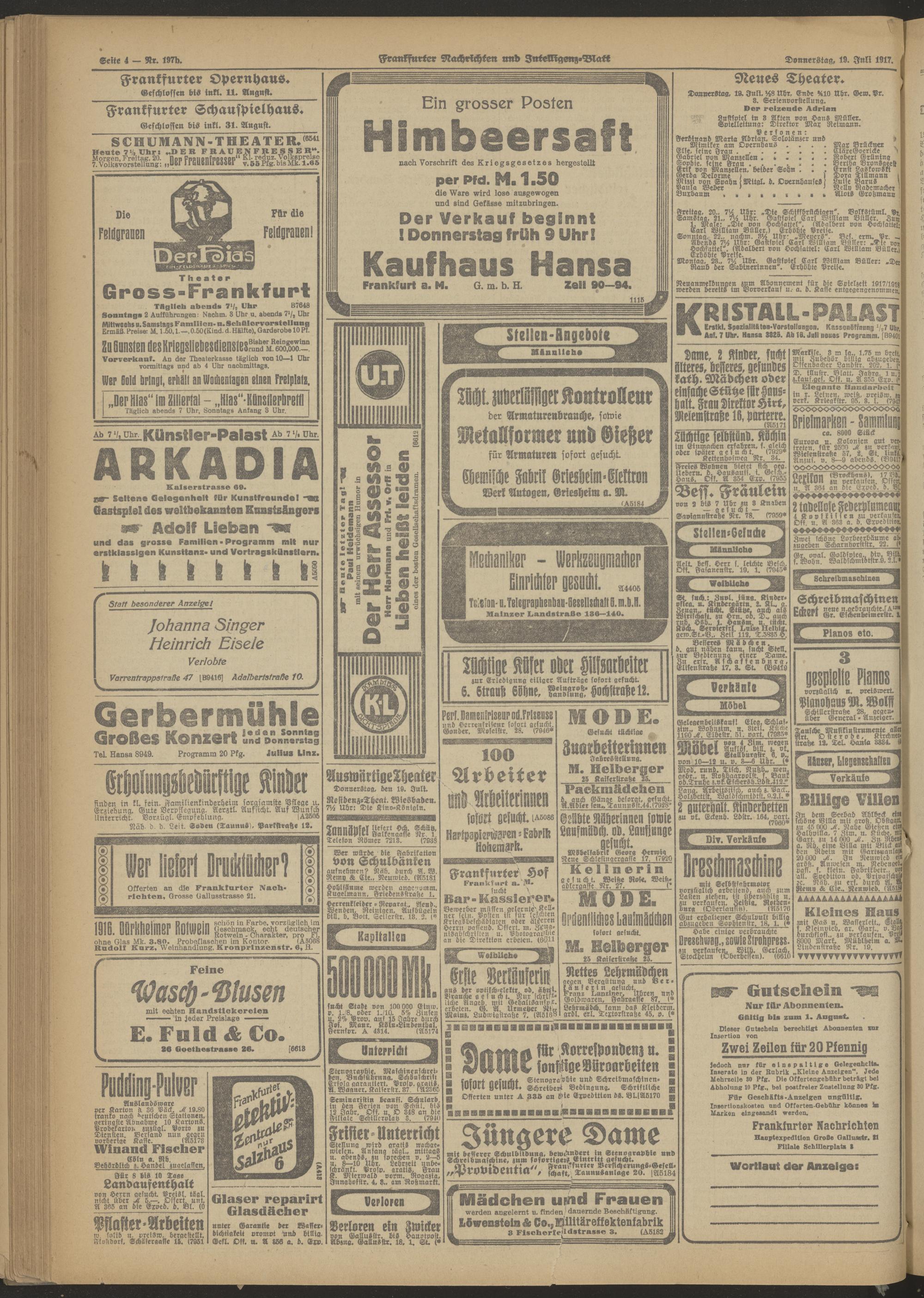 19.07.1917 Morgen-Ausgabe = Nr. 197 b