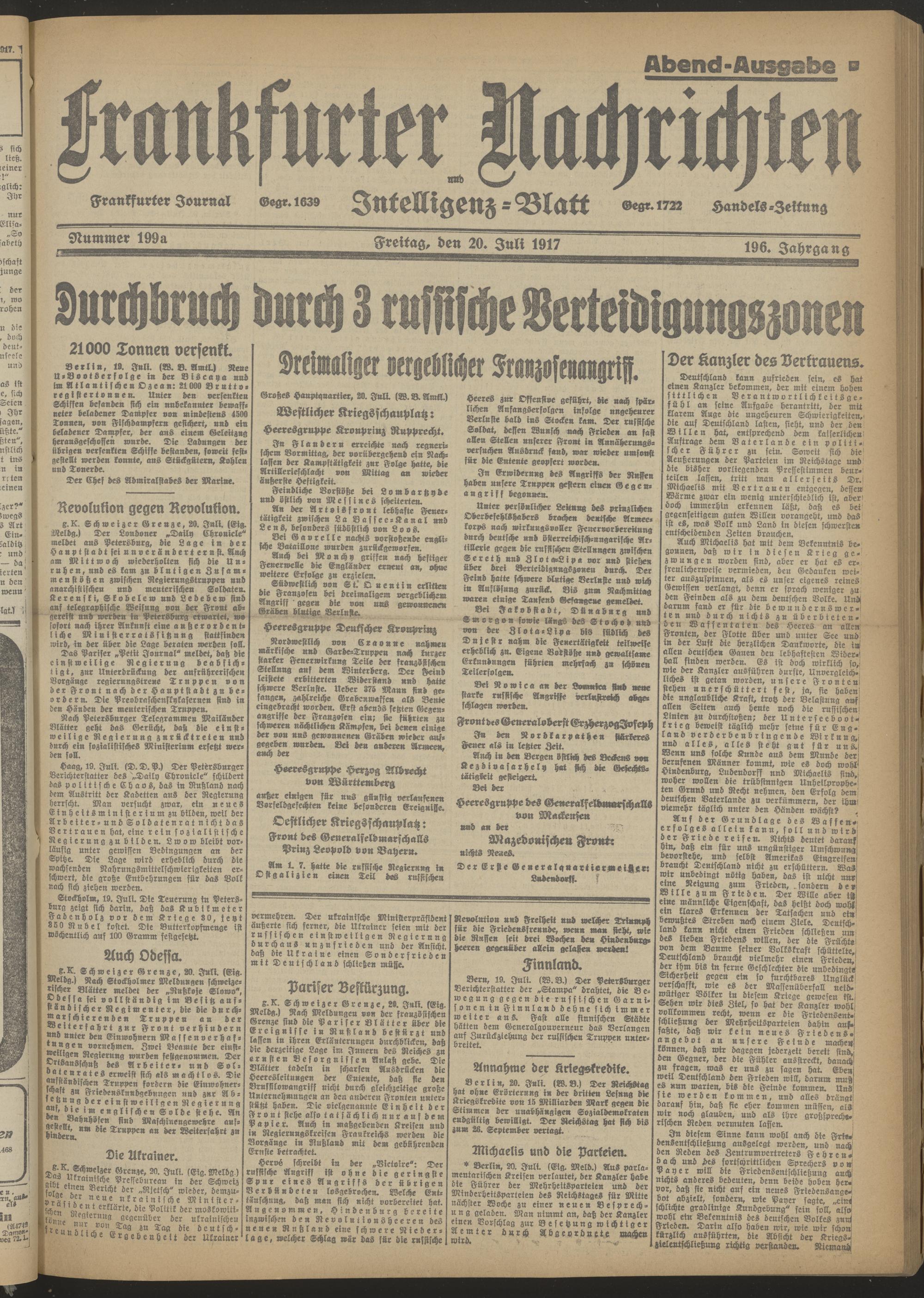 20.07.1917 Abend-Ausgabe = Nr. 199 a