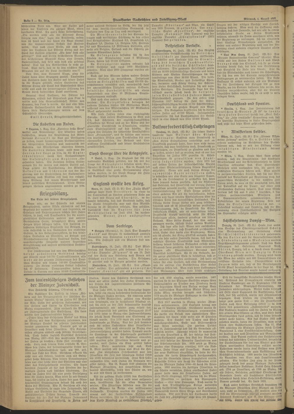 01.08.1917 Abend-Ausgabe = Nr. 211 a
