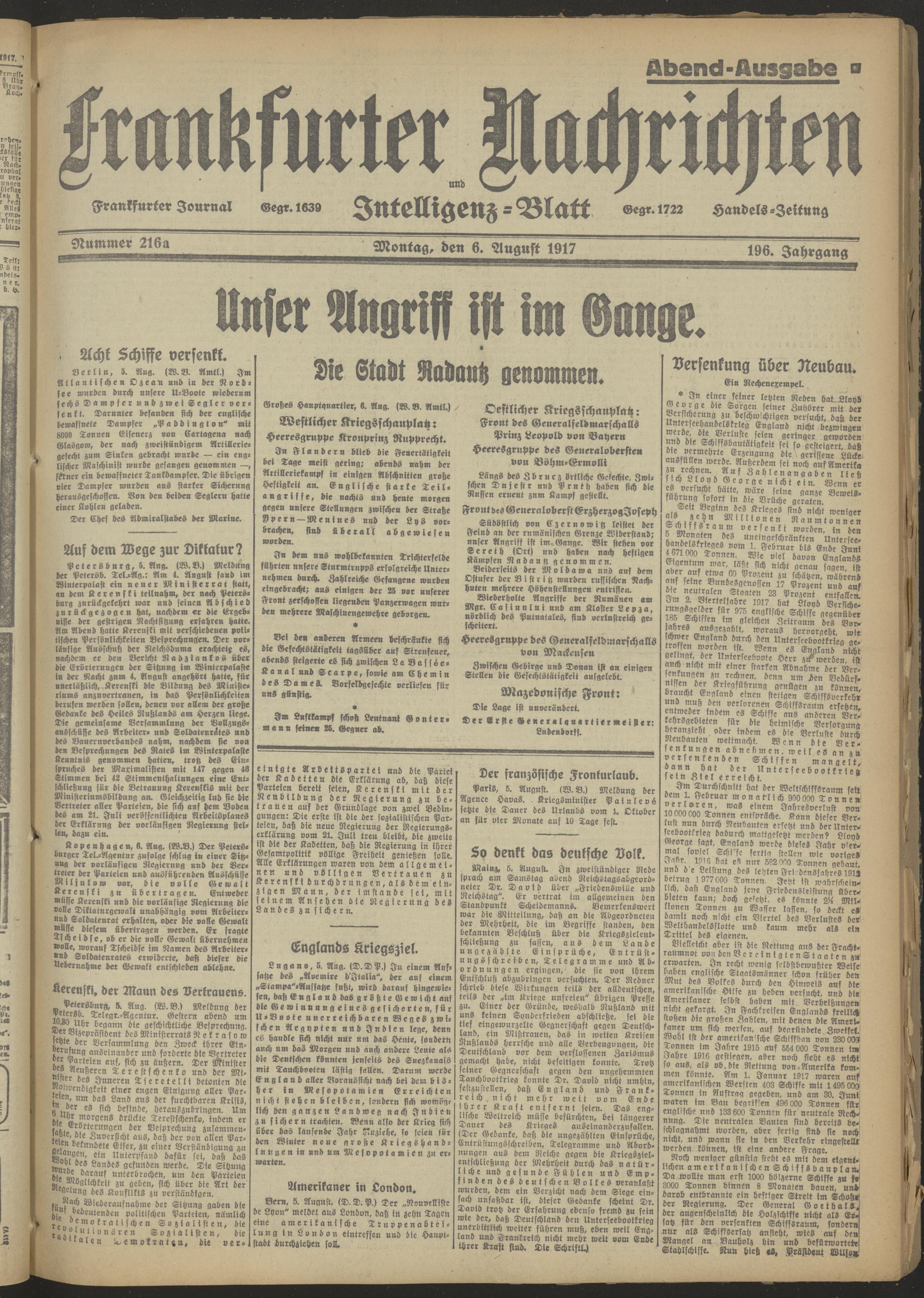 06.08.1917 Abend-Ausgabe = Nr. 216 a