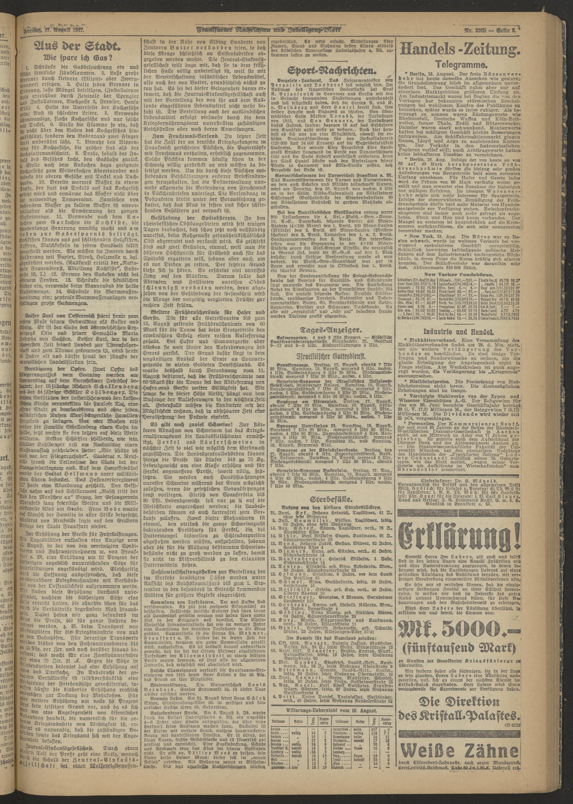 17.08.1917 Morgen-Ausgabe = Nr. 226 b