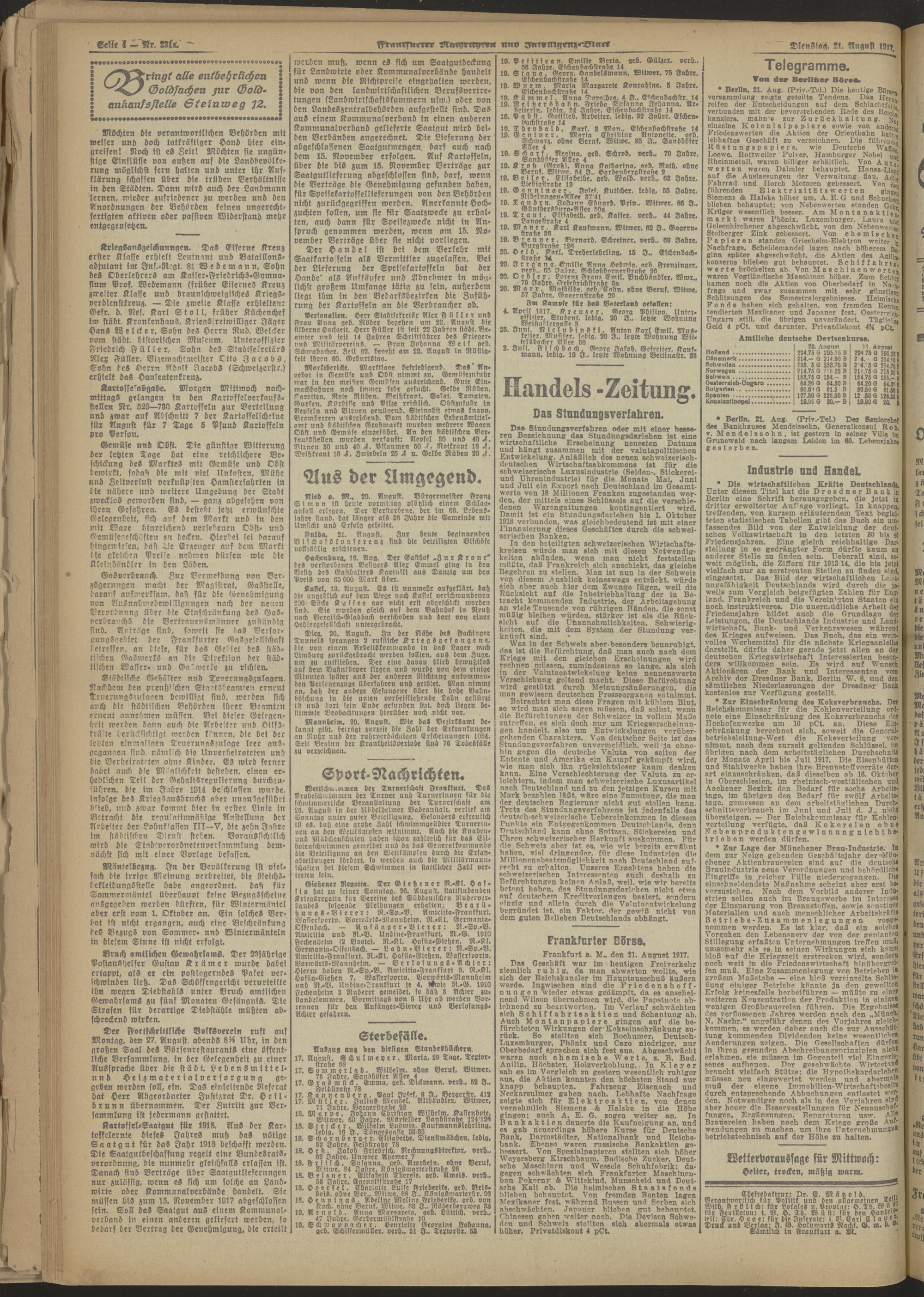 21.08.1917 Abend-Ausgabe = Nr. 231 a