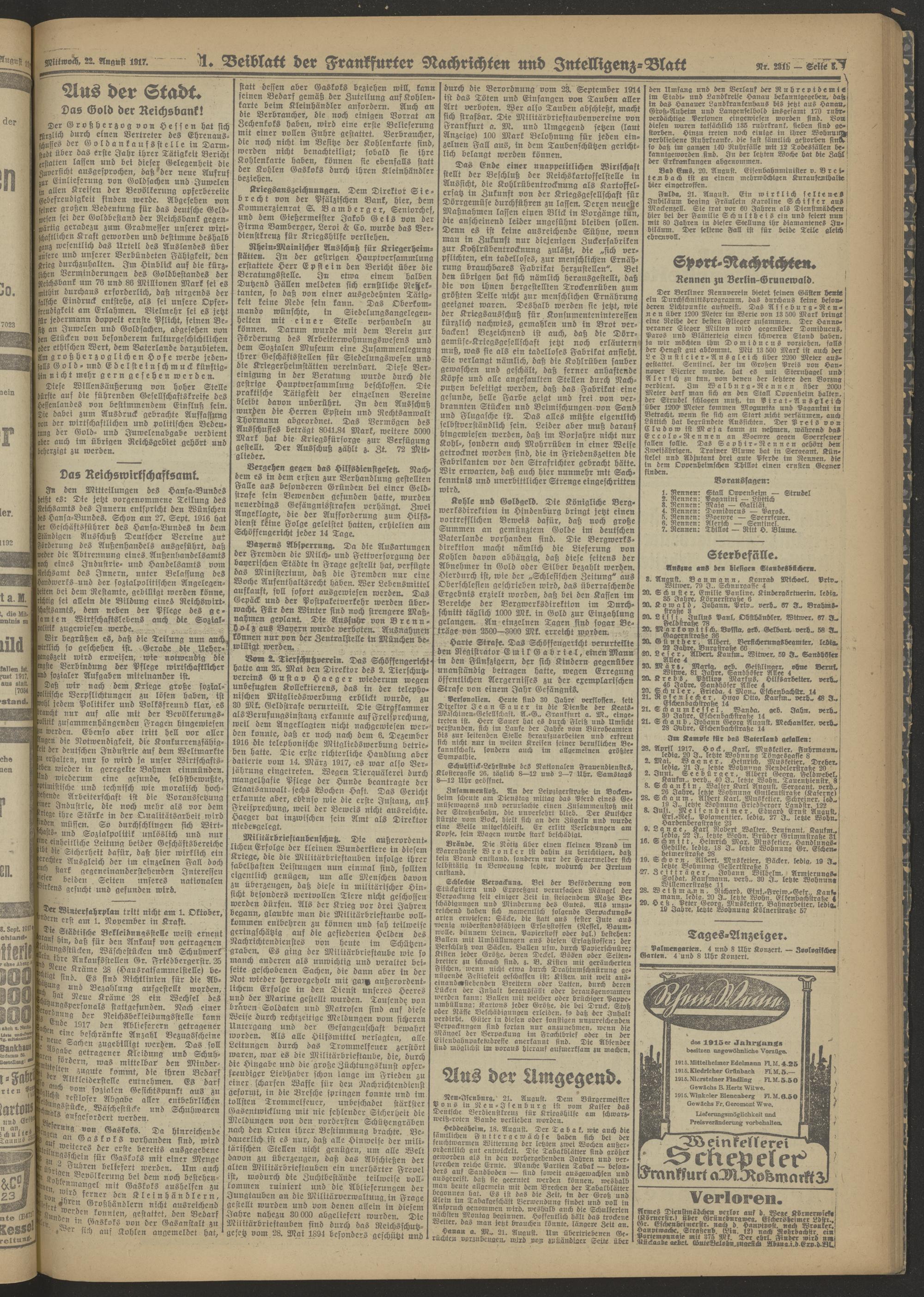 22.08.1917 Morgen-Ausgabe = Nr. 231 b