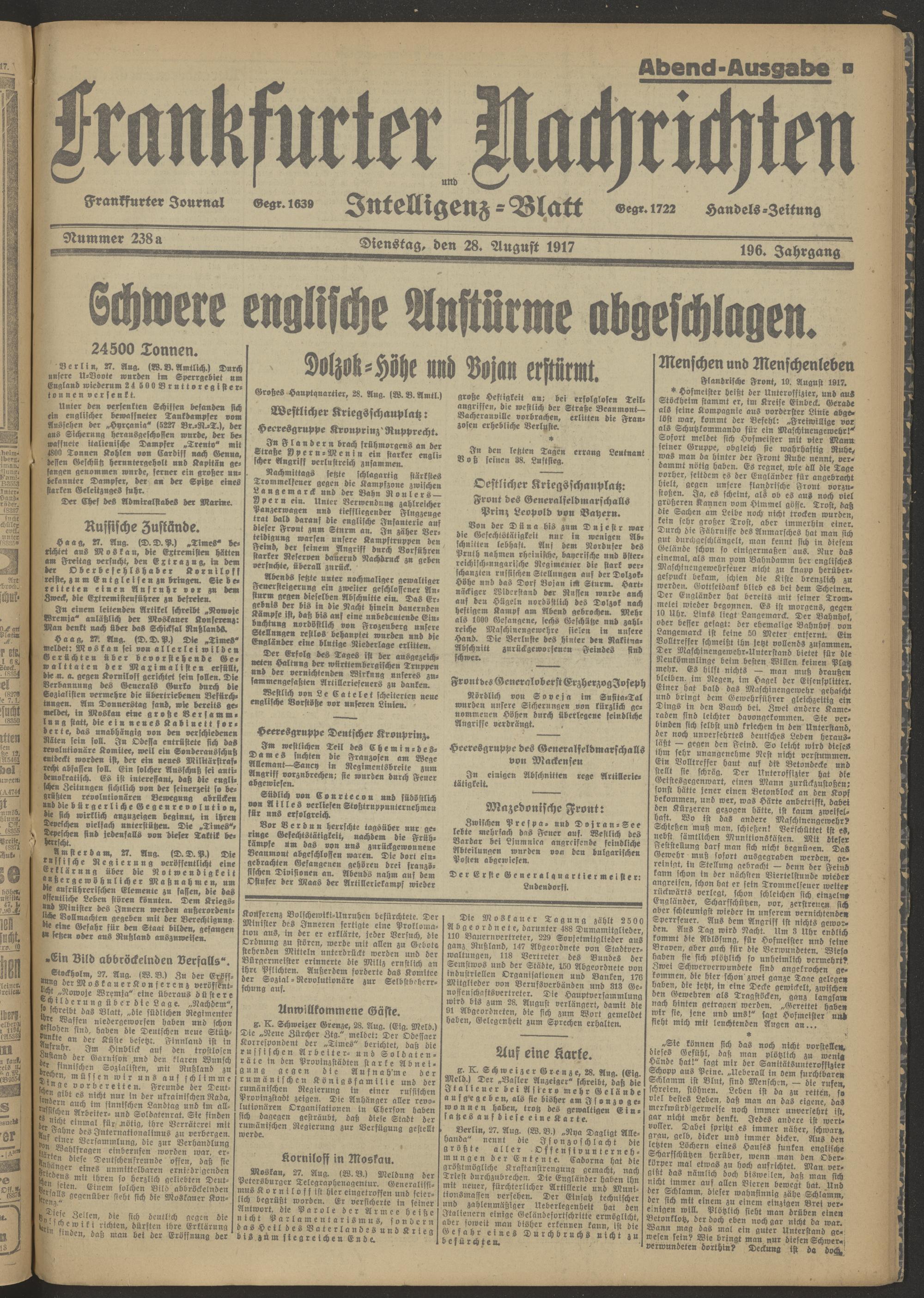 28.08.1917 Abend-Ausgabe = Nr. 238 a