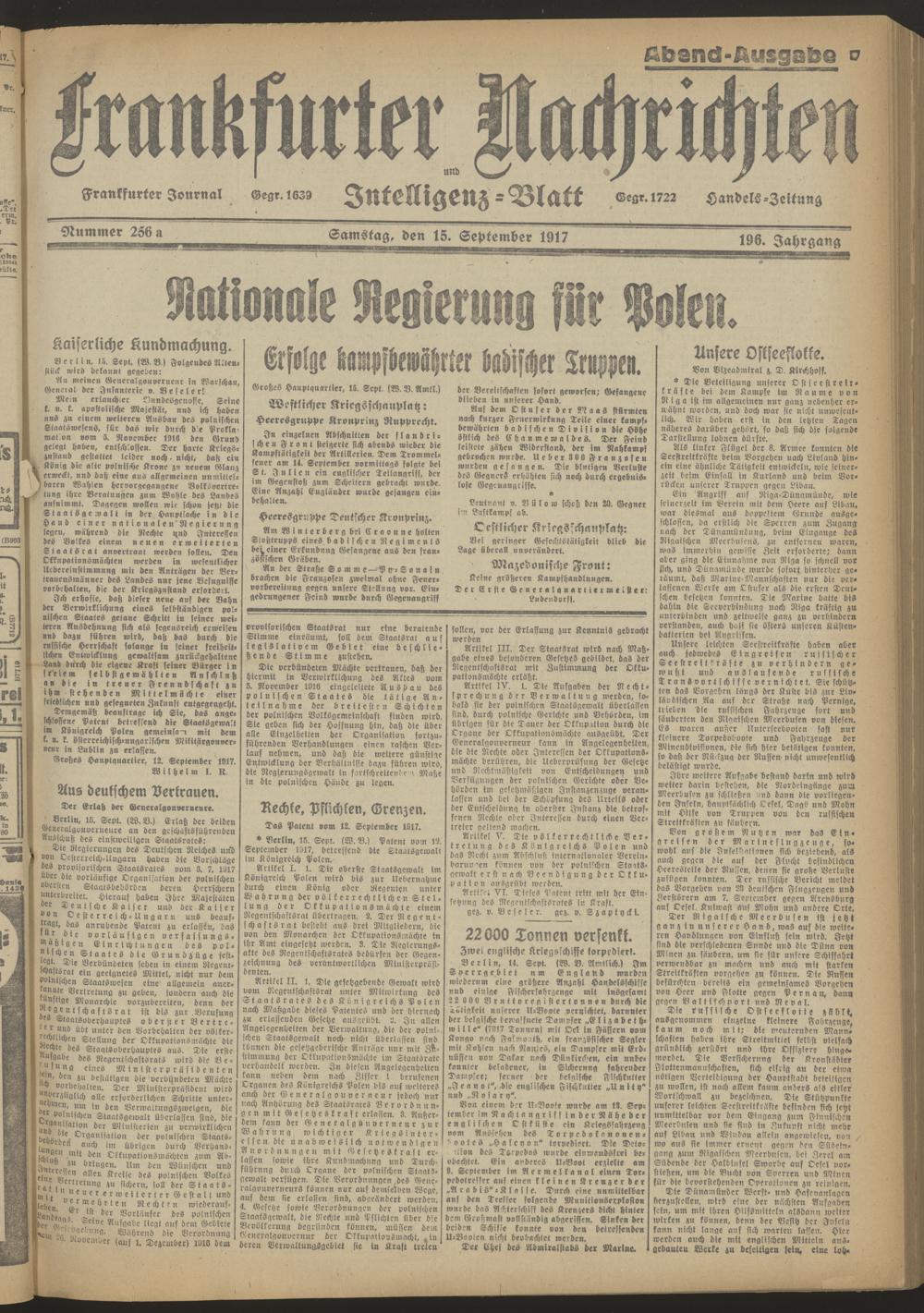 15.09.1917 Abend-Ausgabe = Nr. 256 a