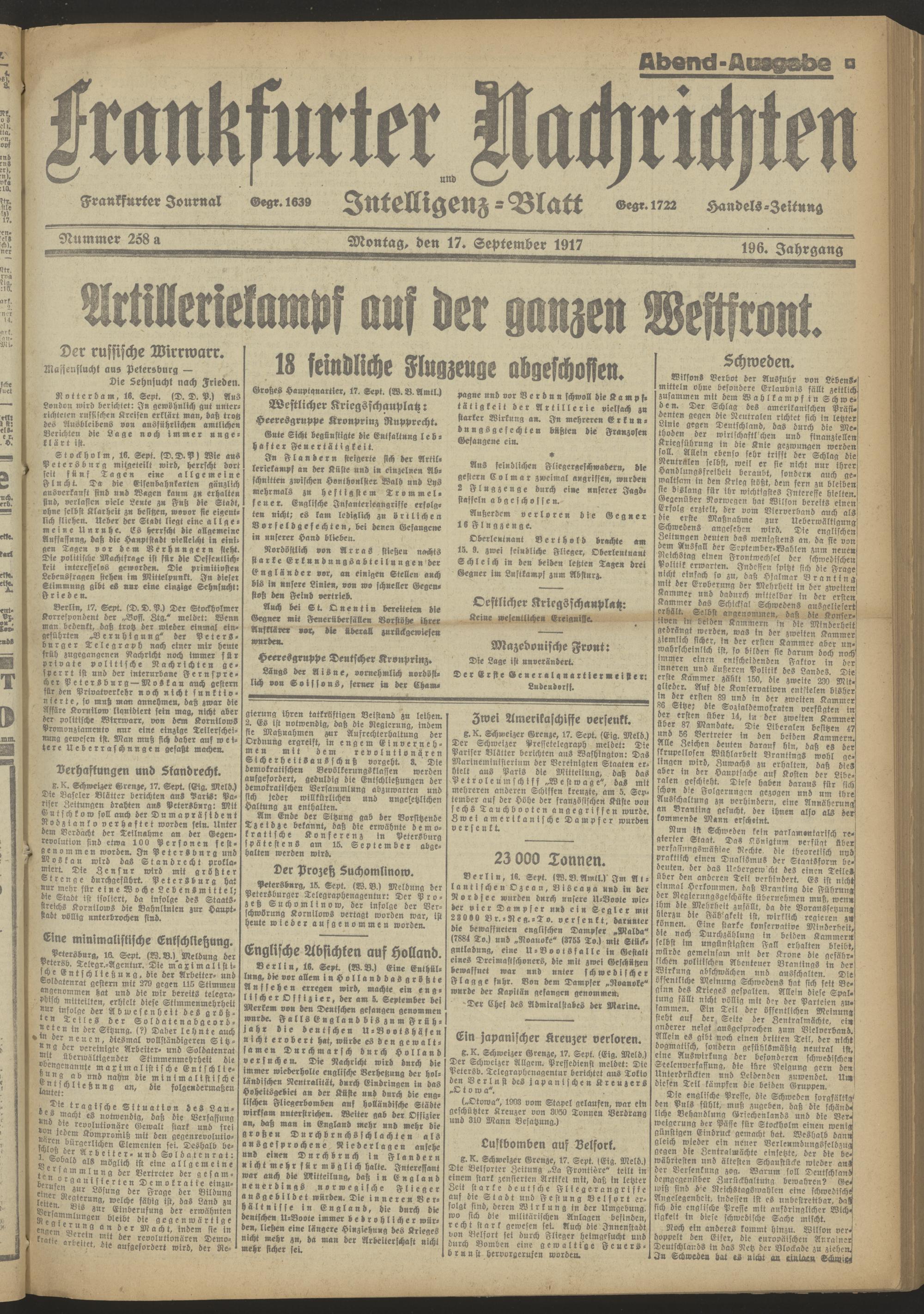 17.09.1917 Abend-Ausgabe = Nr. 258 a