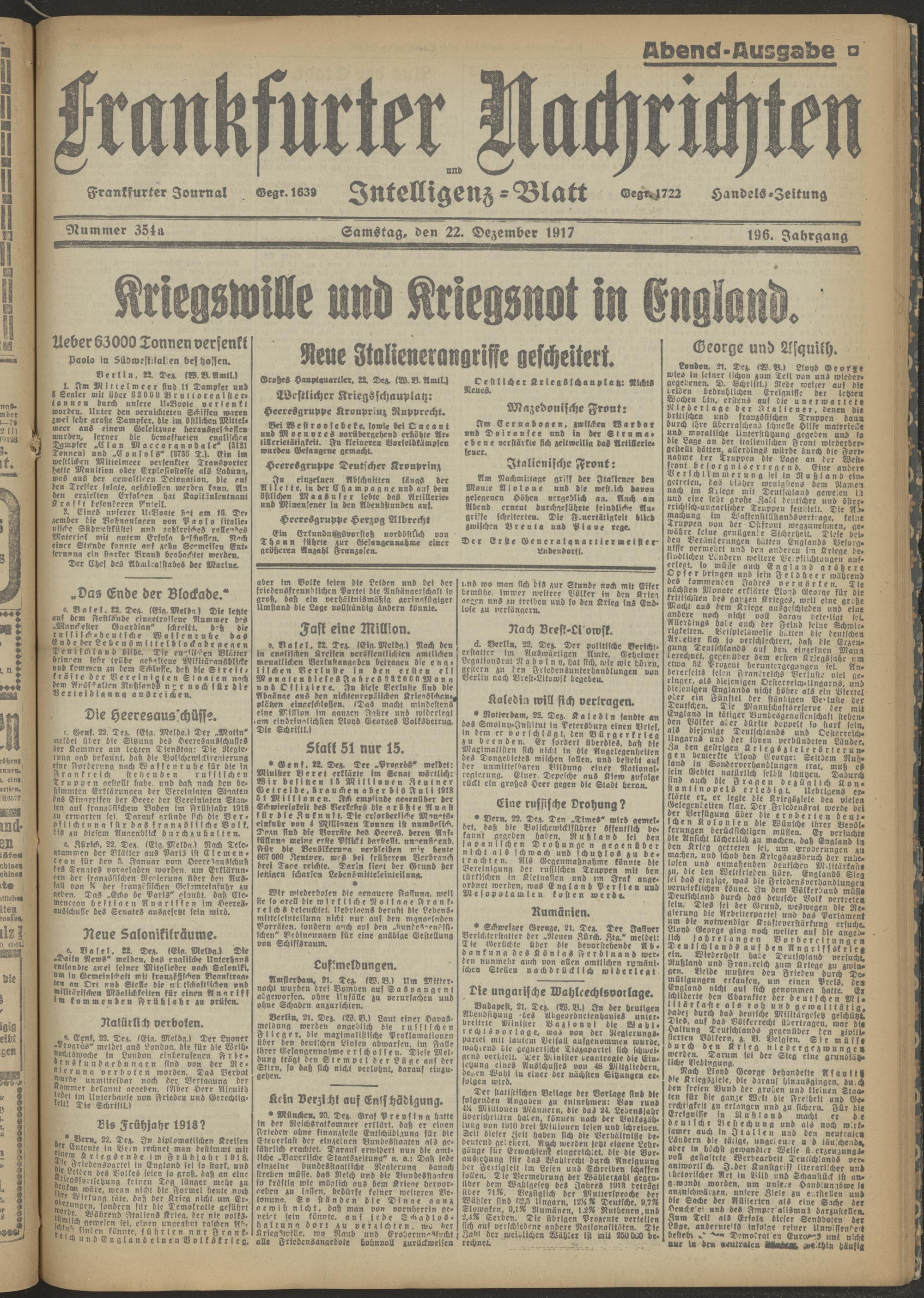22.12.1917 Abend-Ausgabe = Nr. 354 a