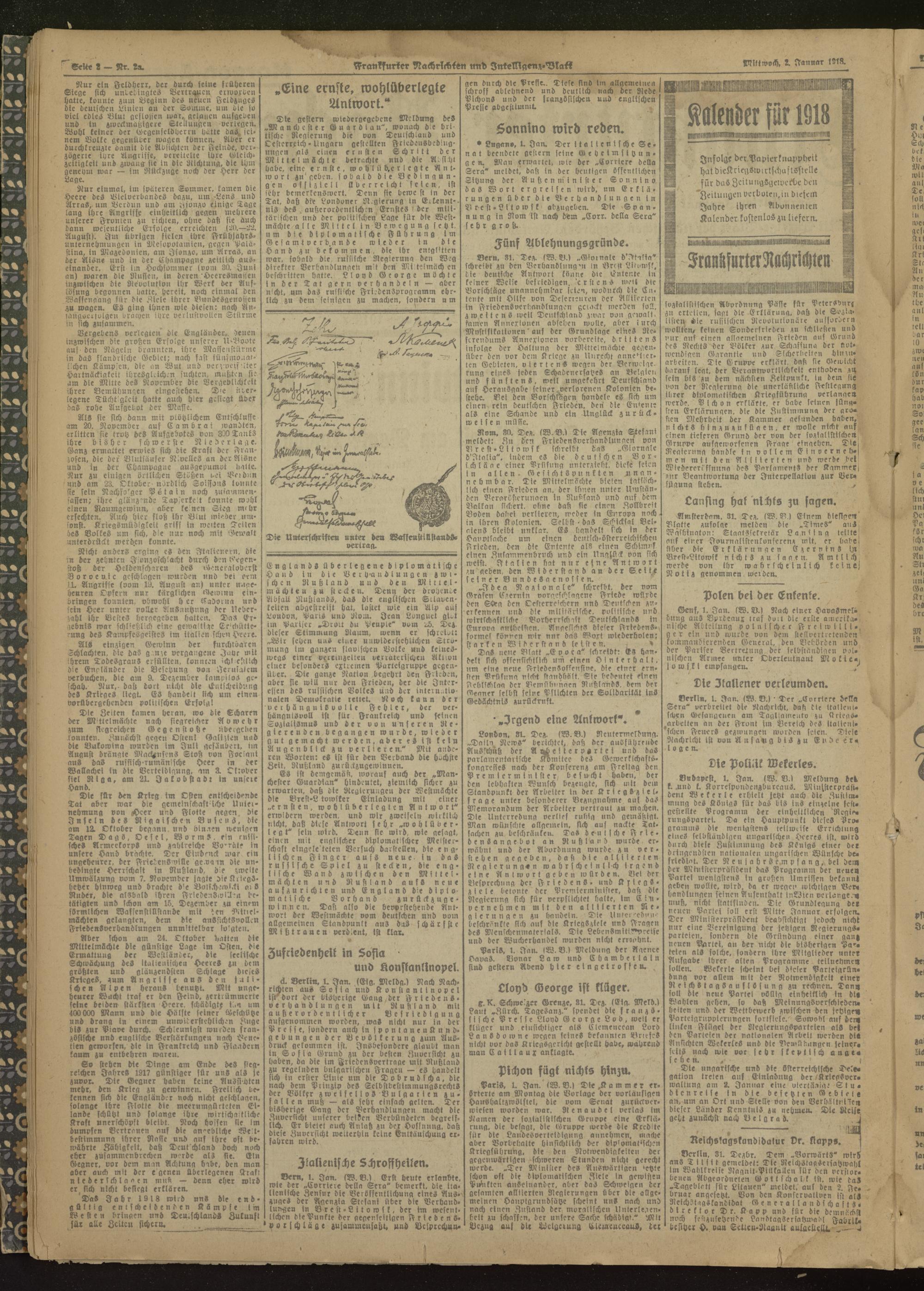 02.01.1918 Morgen-Ausgabe = Nr. 2 a