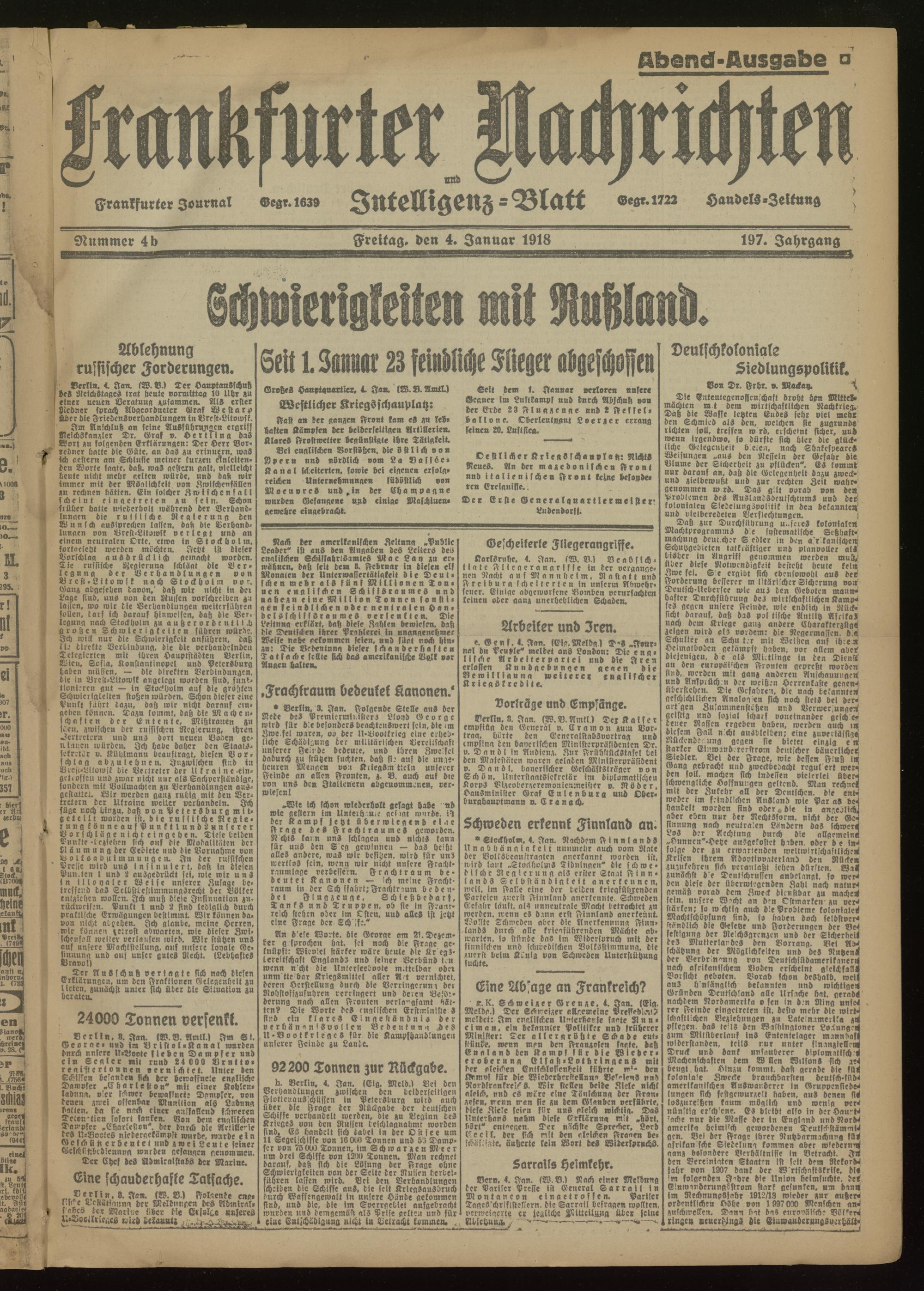 04.01.1918 Abend-Ausgabe = Nr. 4 b
