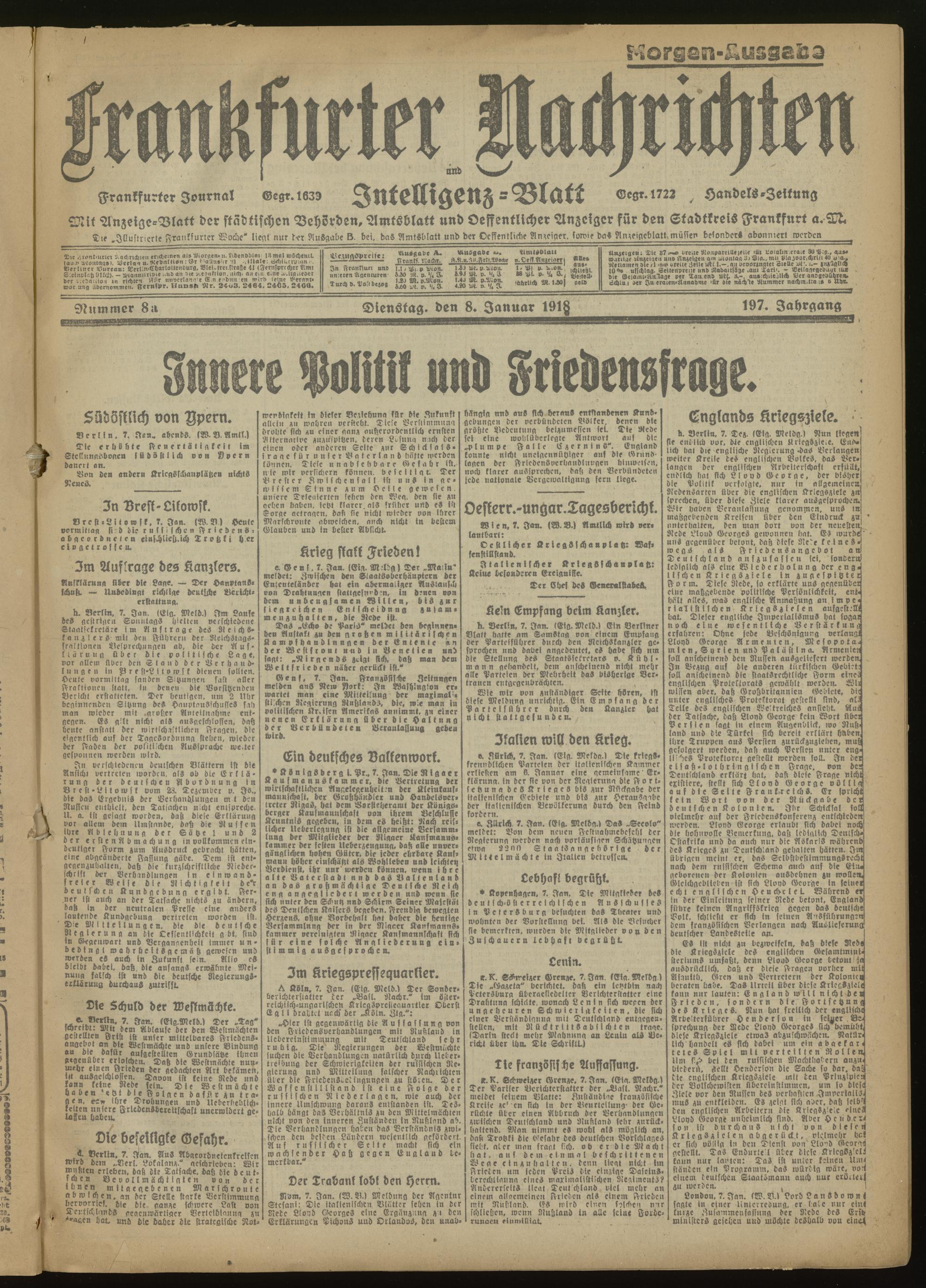 08.01.1918 Morgen-Ausgabe = Nr. 8 a