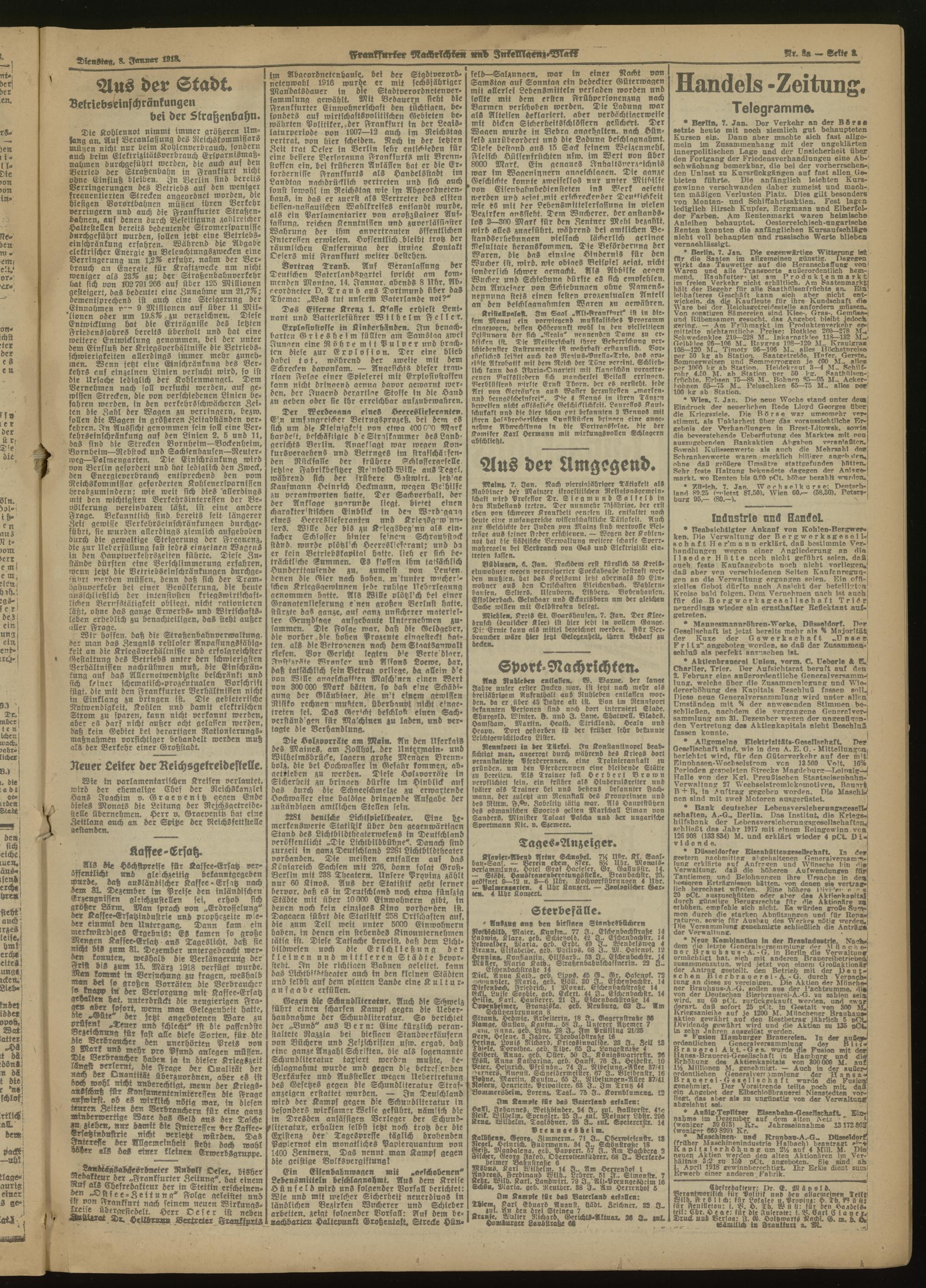 08.01.1918 Morgen-Ausgabe = Nr. 8 a