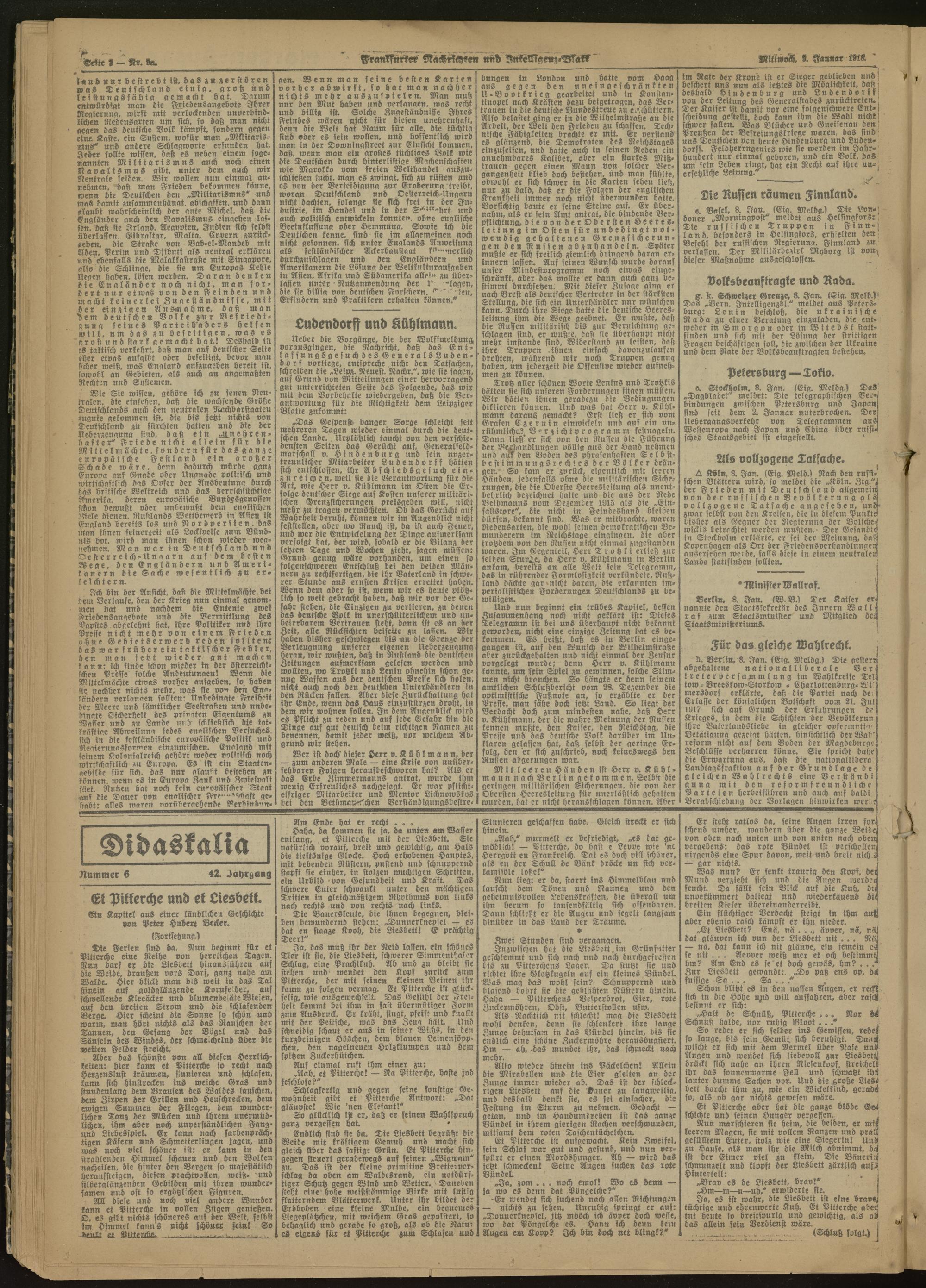 09.01.1918 Morgen-Ausgabe = Nr. 9 a