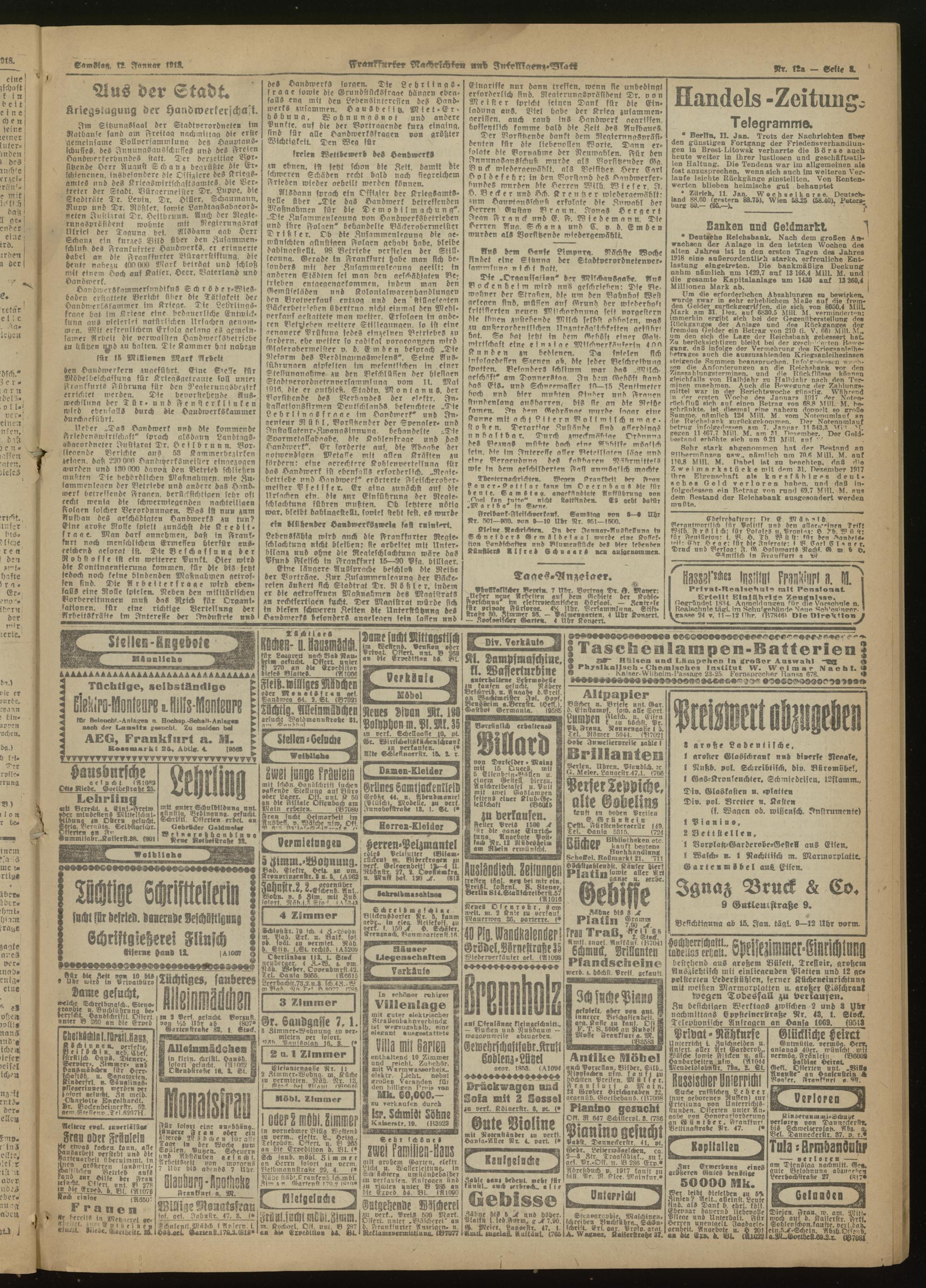 12.01.1918 Morgen-Ausgabe = Nr. 12 a