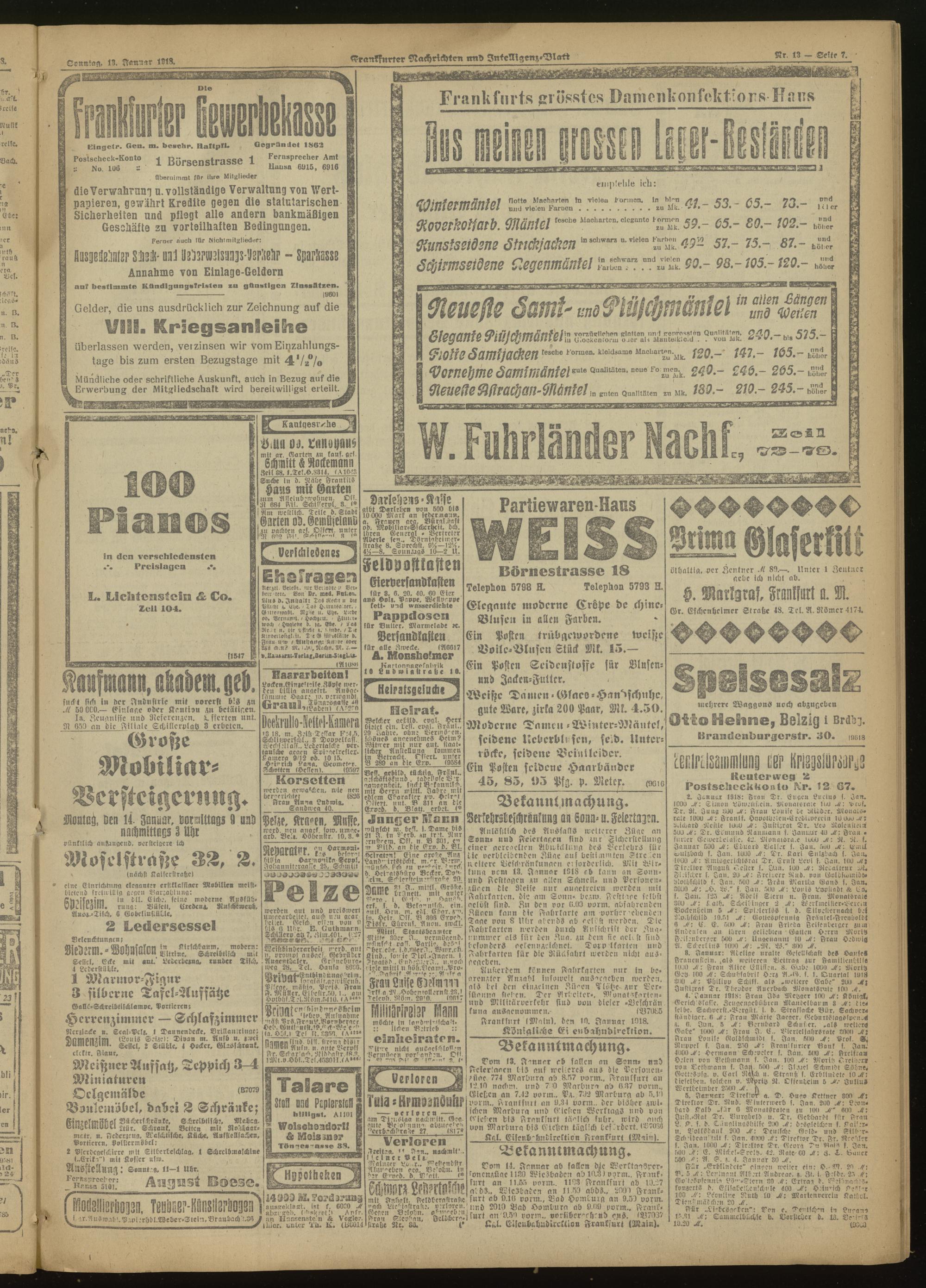 13.01.1918 Morgen-Ausgabe = Nr. 13