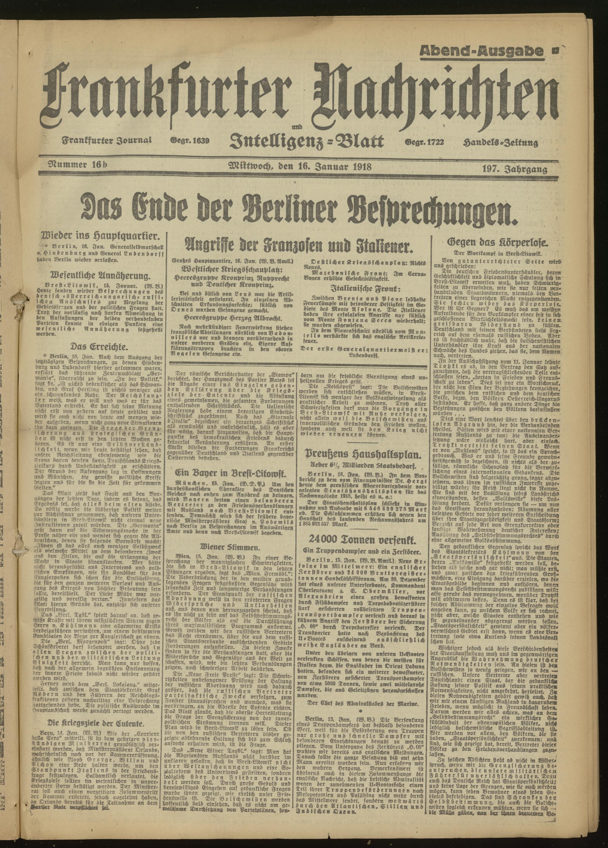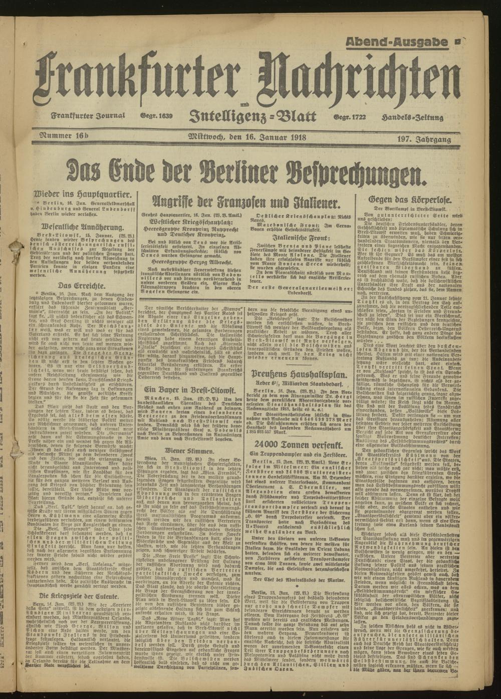 16.01.1918 Abend-Ausgabe = Nr. 16 b