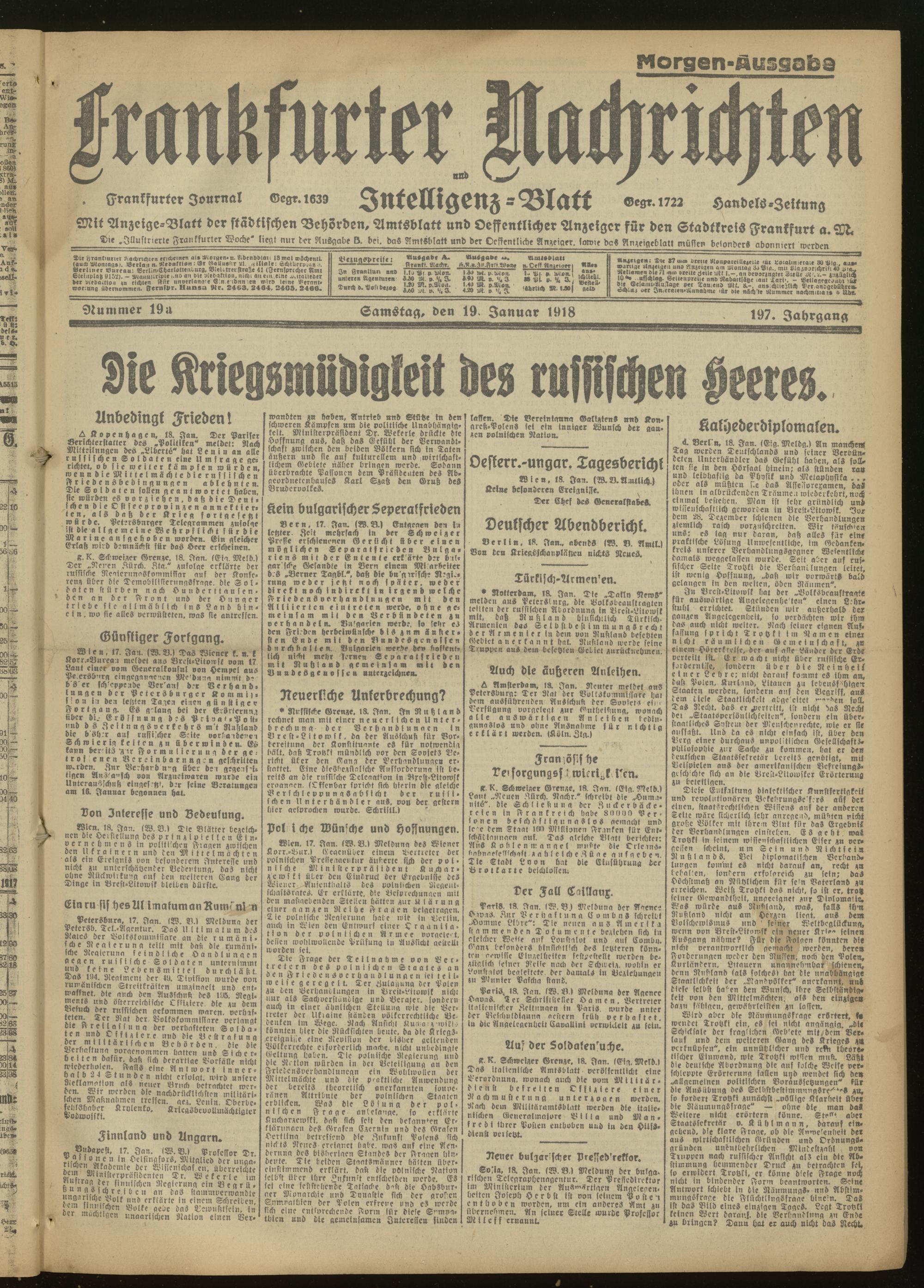 19.01.1918 Morgen-Ausgabe = Nr. 19 a