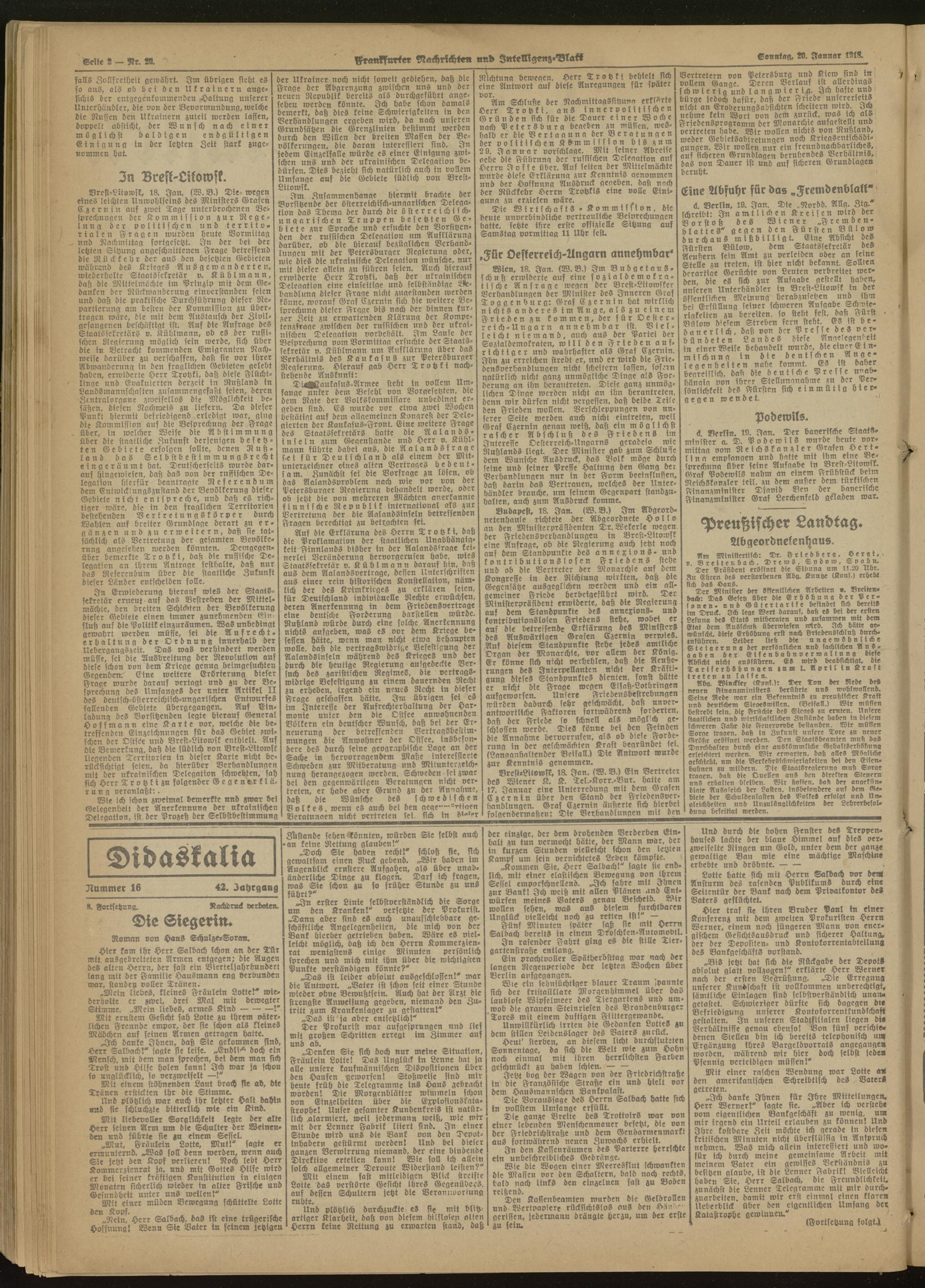 20.01.1918 Morgen-Ausgabe = Nr. 20