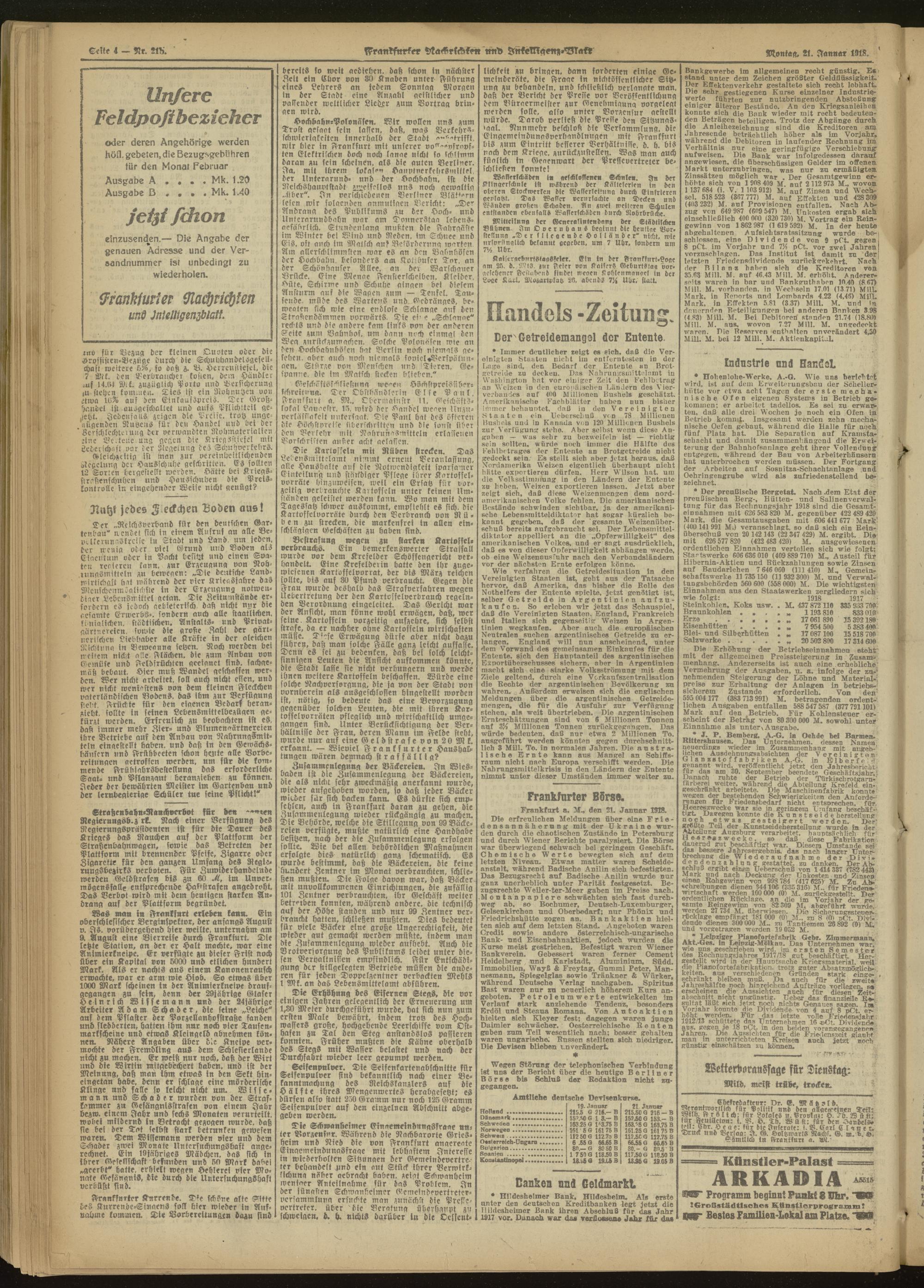 21.01.1918 Abend-Ausgabe = Nr. 21 b
