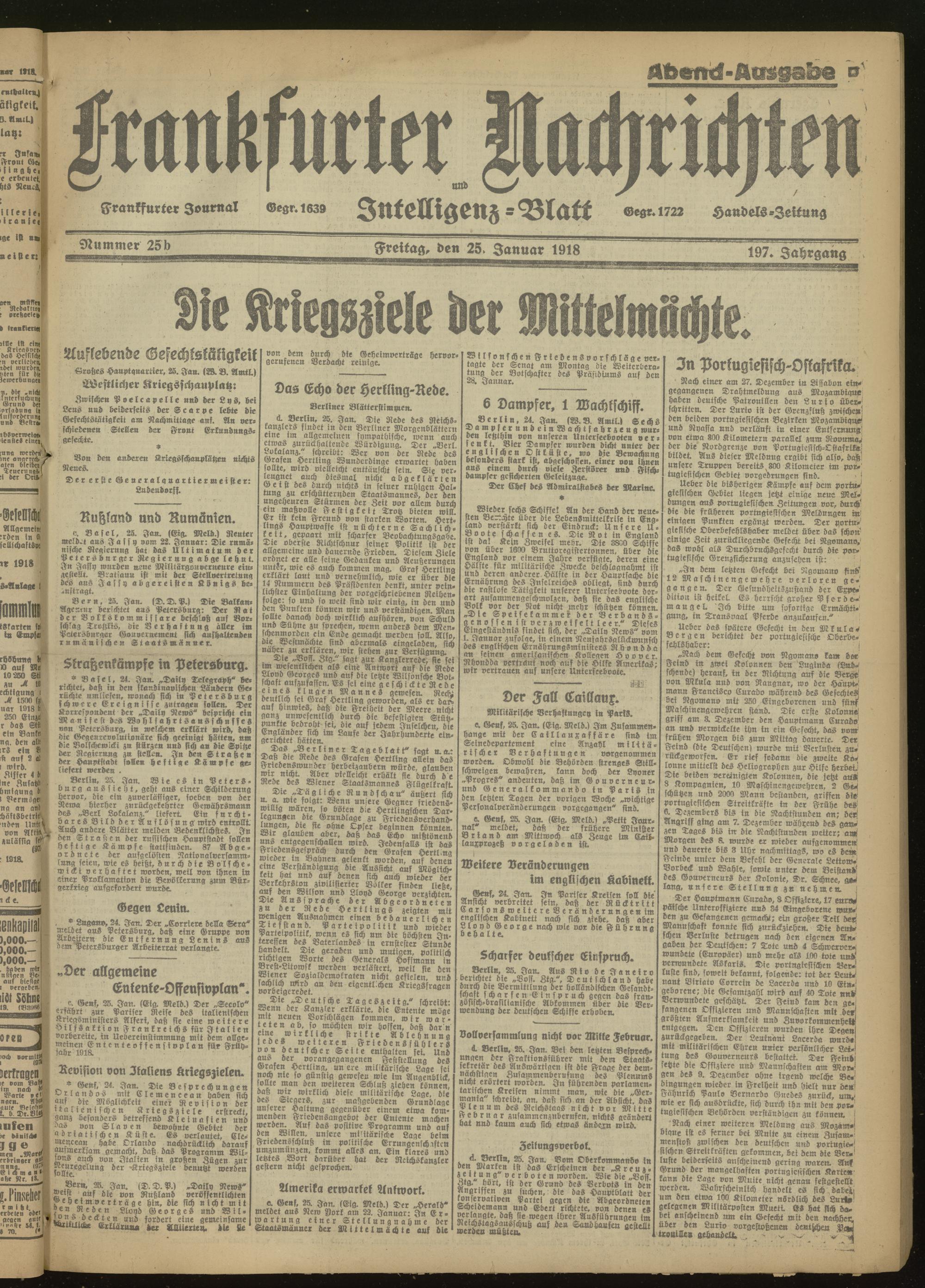 25.01.1918 Abend-Ausgabe = Nr. 25 b