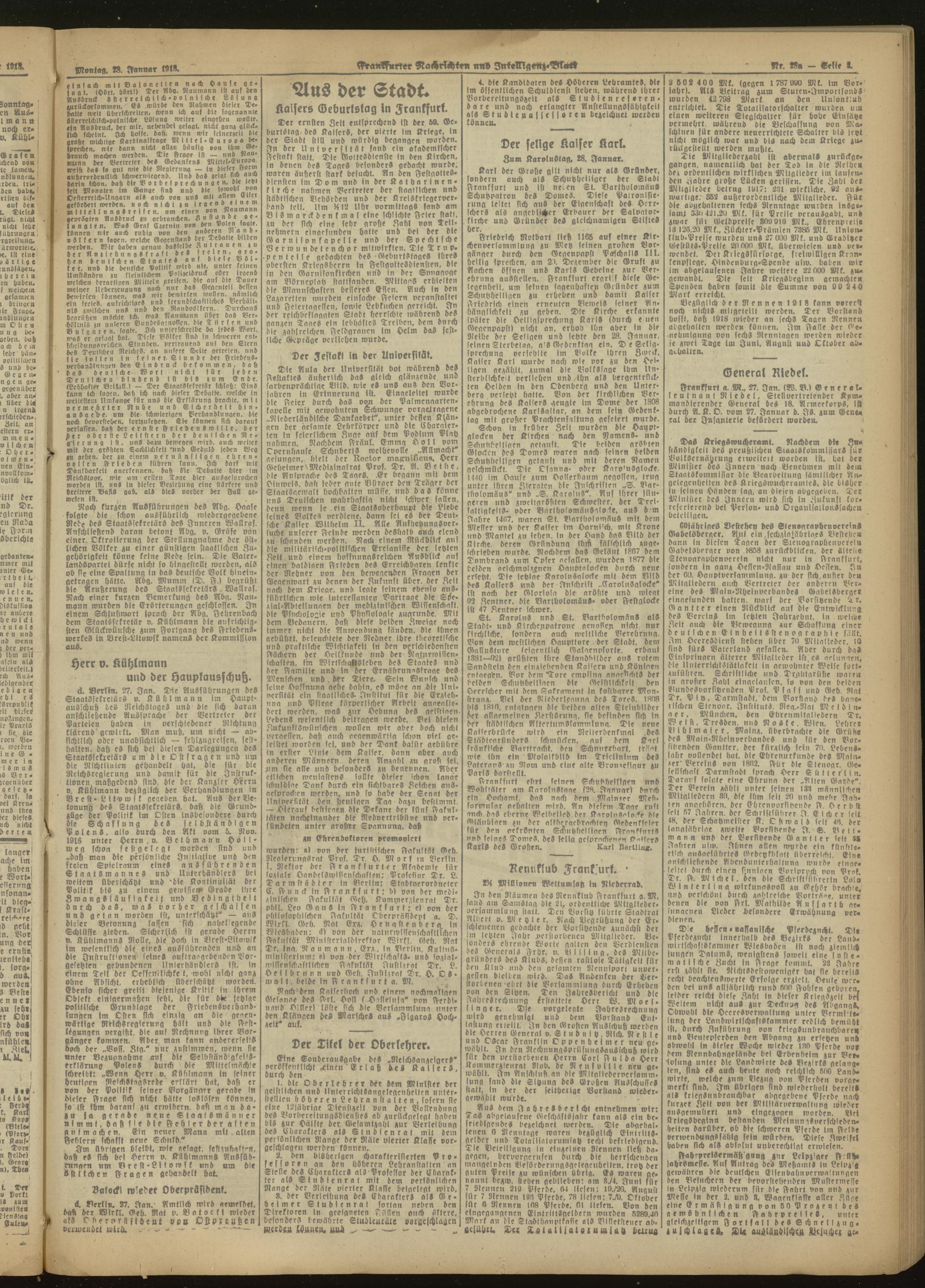 28.01.1918 Morgen-Ausgabe = Nr. 28 a
