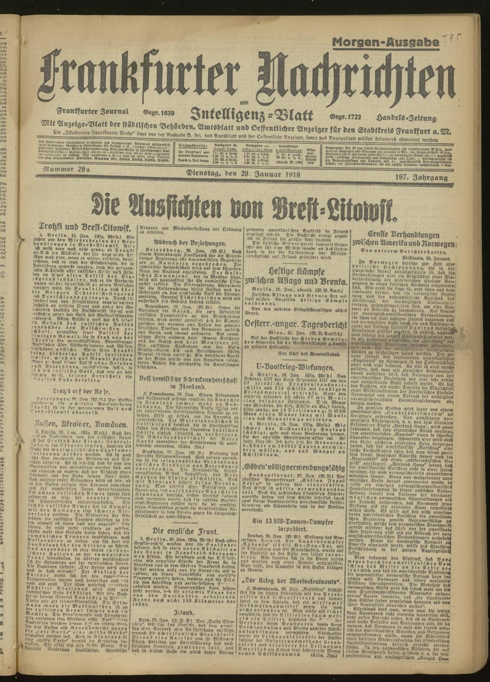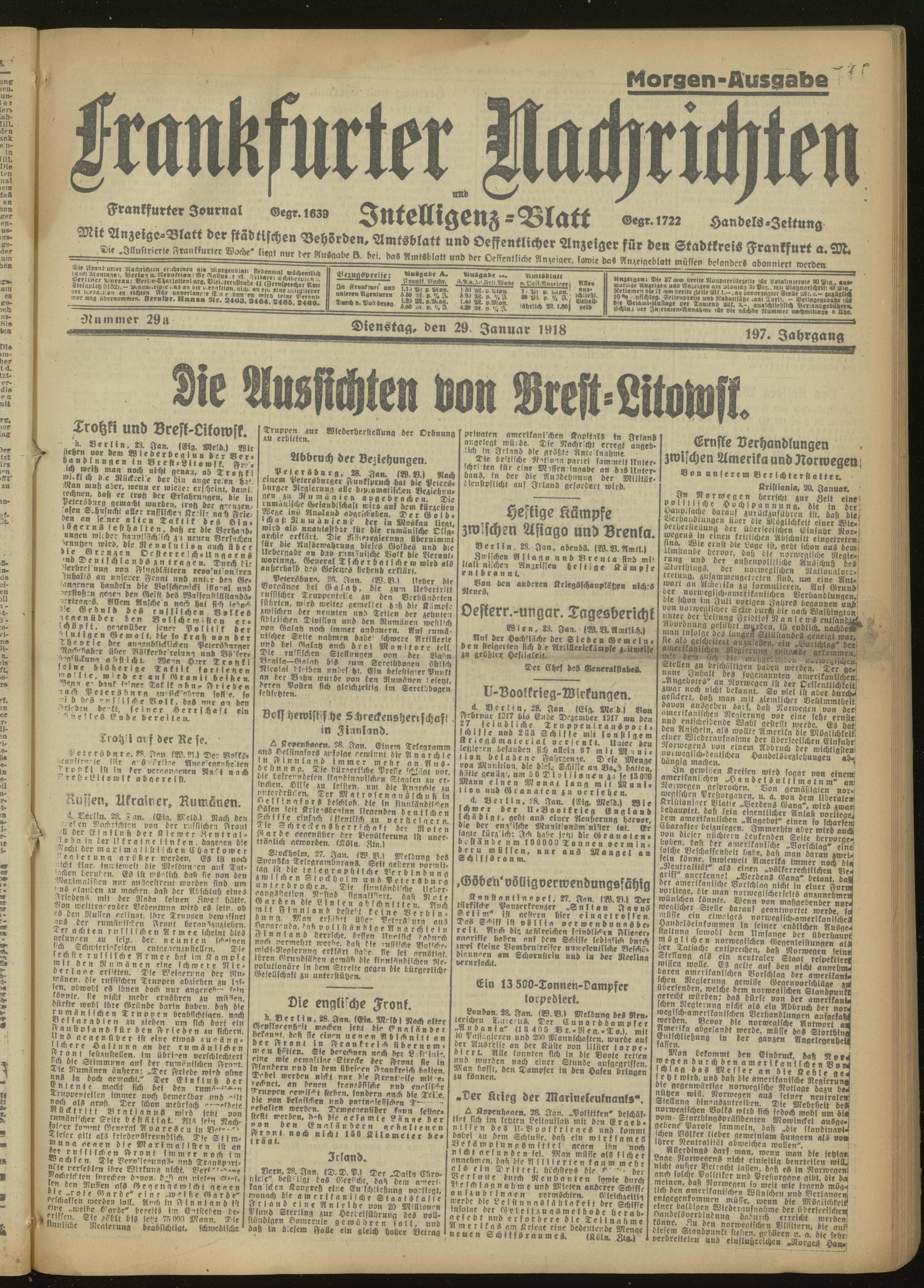 29.01.1918 Morgen-Ausgabe = Nr. 29 a