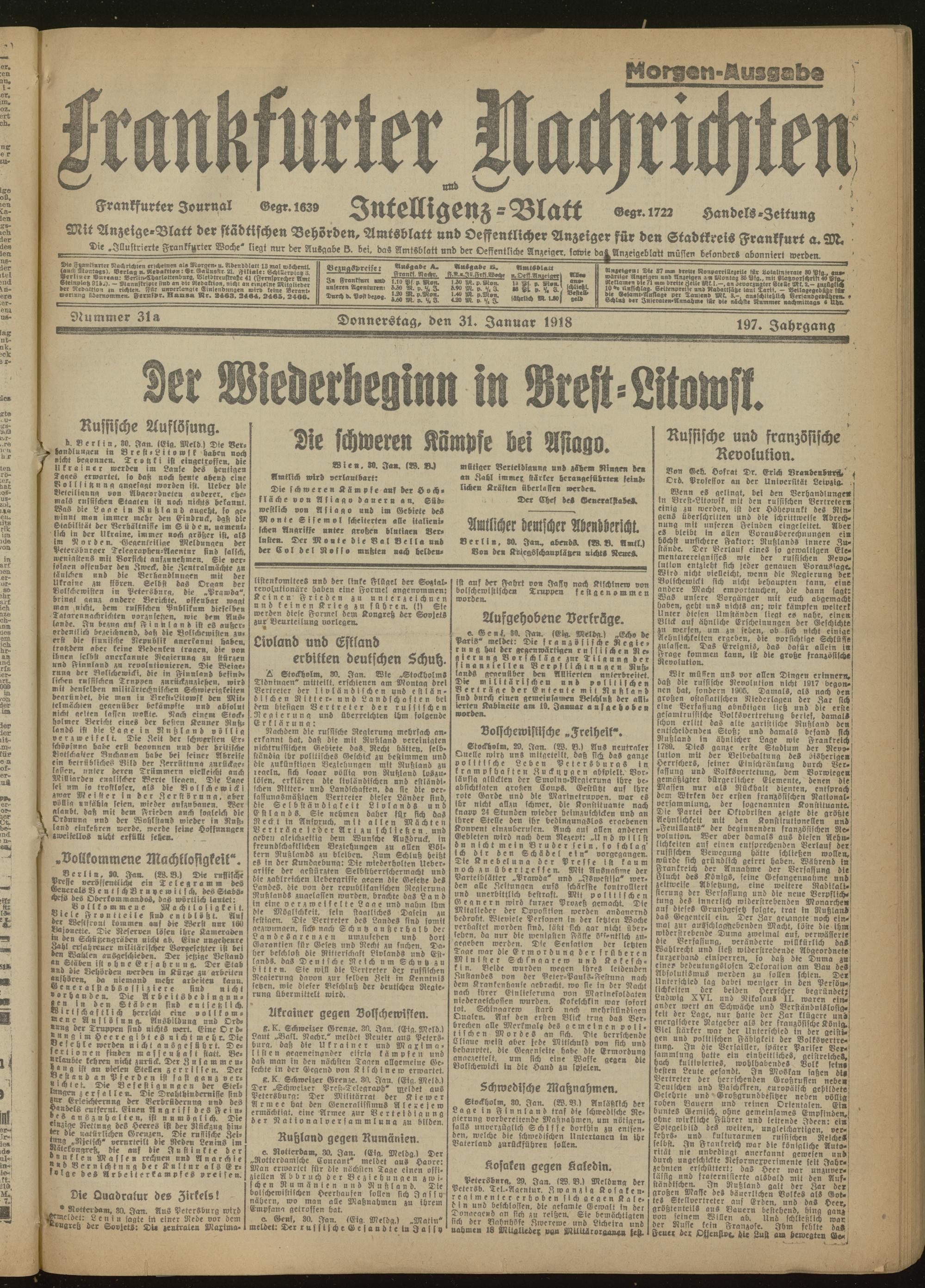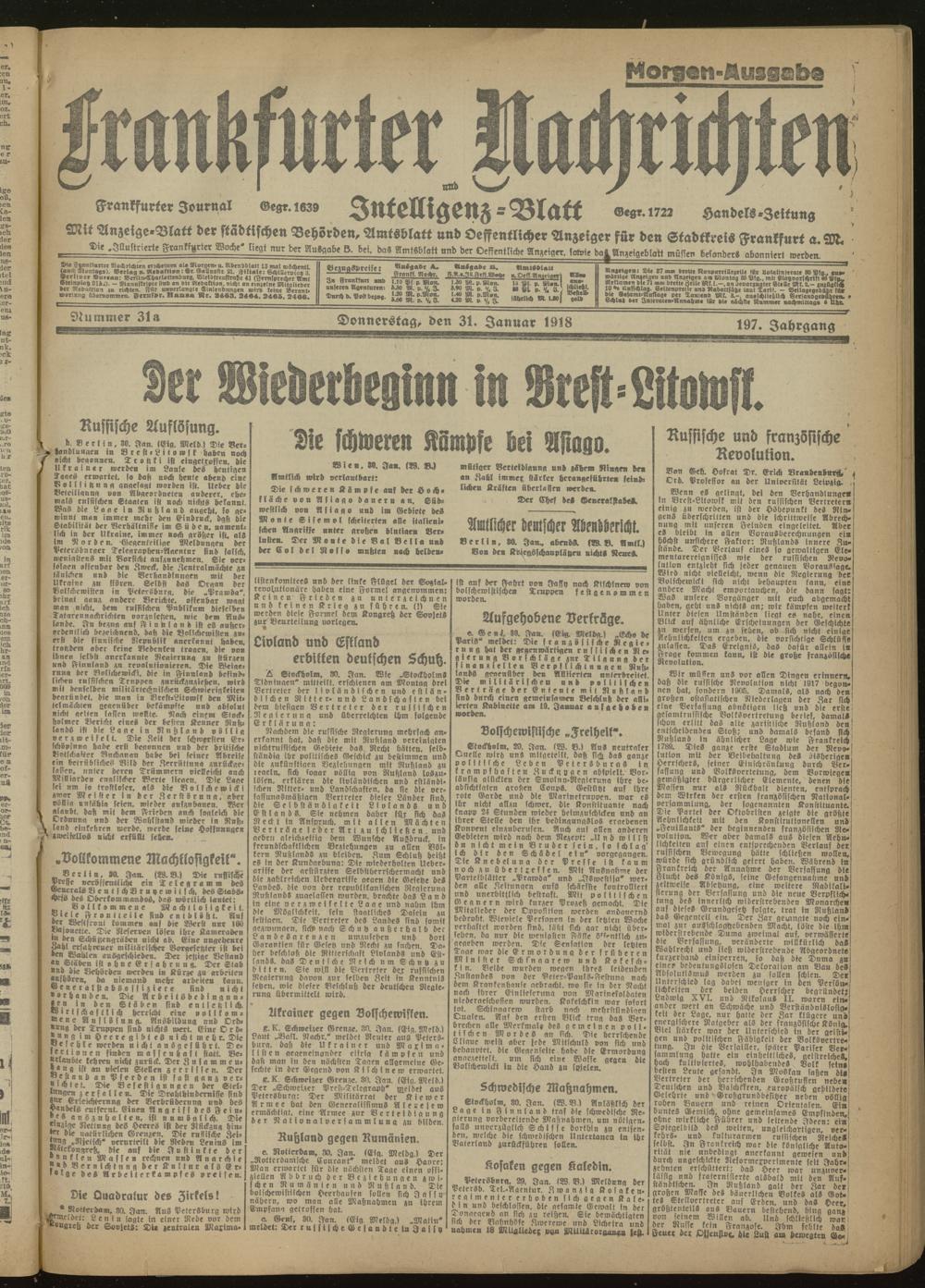 31.01.1918 Morgen-Ausgabe = Nr. 31 a