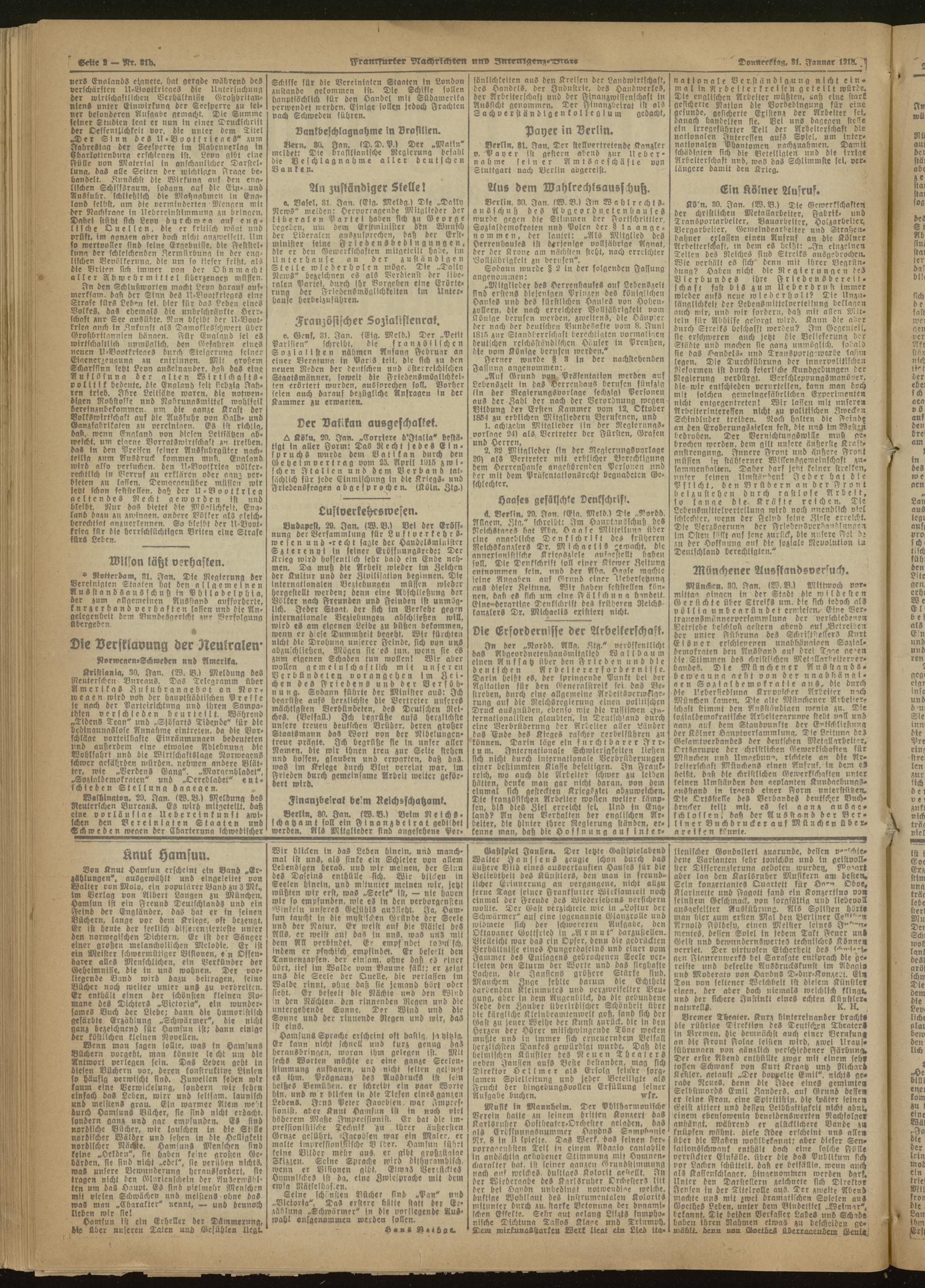 31.01.1918 Abend-Ausgabe = Nr. 31 b