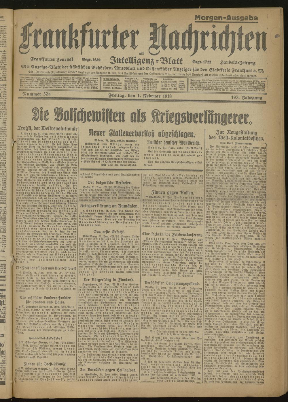 01.02.1918 Morgen- Ausgabe = Nr. 32 a