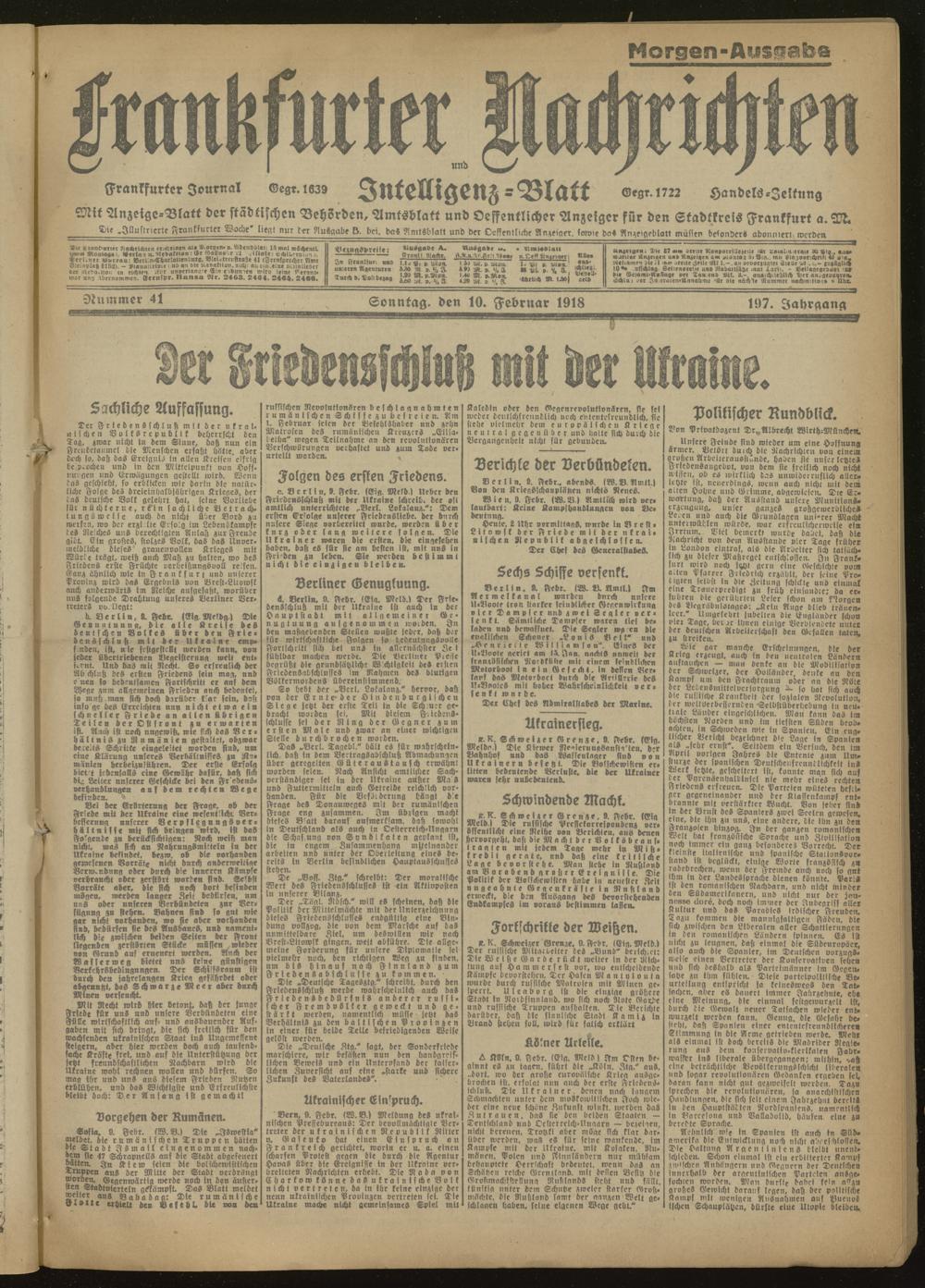 10.02.1918 Morgen-Ausgabe = Nr. 41