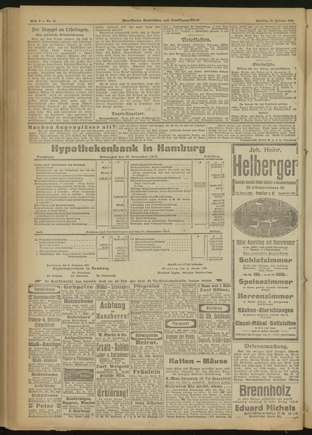 10.02.1918 Morgen-Ausgabe = Nr. 41