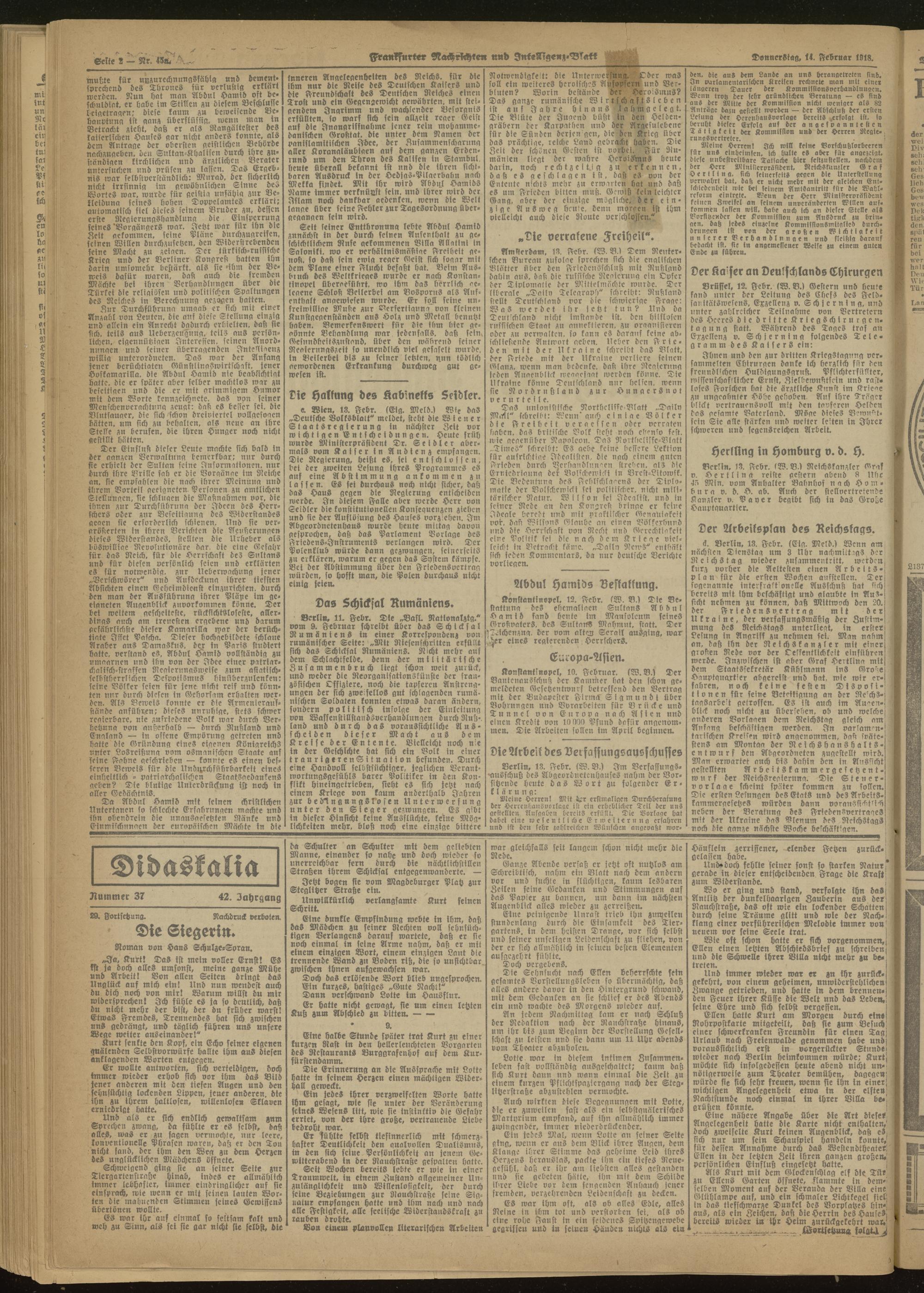 14.02.1918 Morgen-Ausgabe = Nr. 45 a