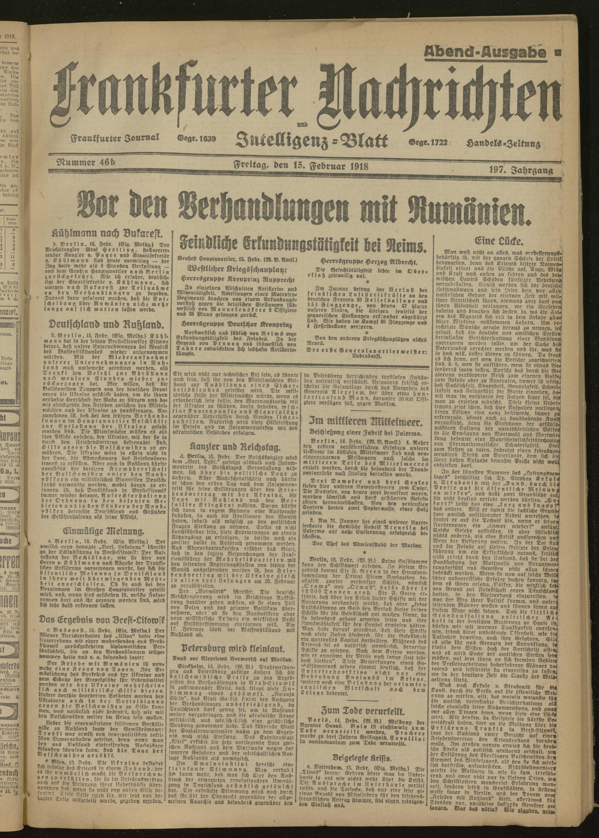 15.02.1918 Abend-Ausgabe = Nr. 46 b