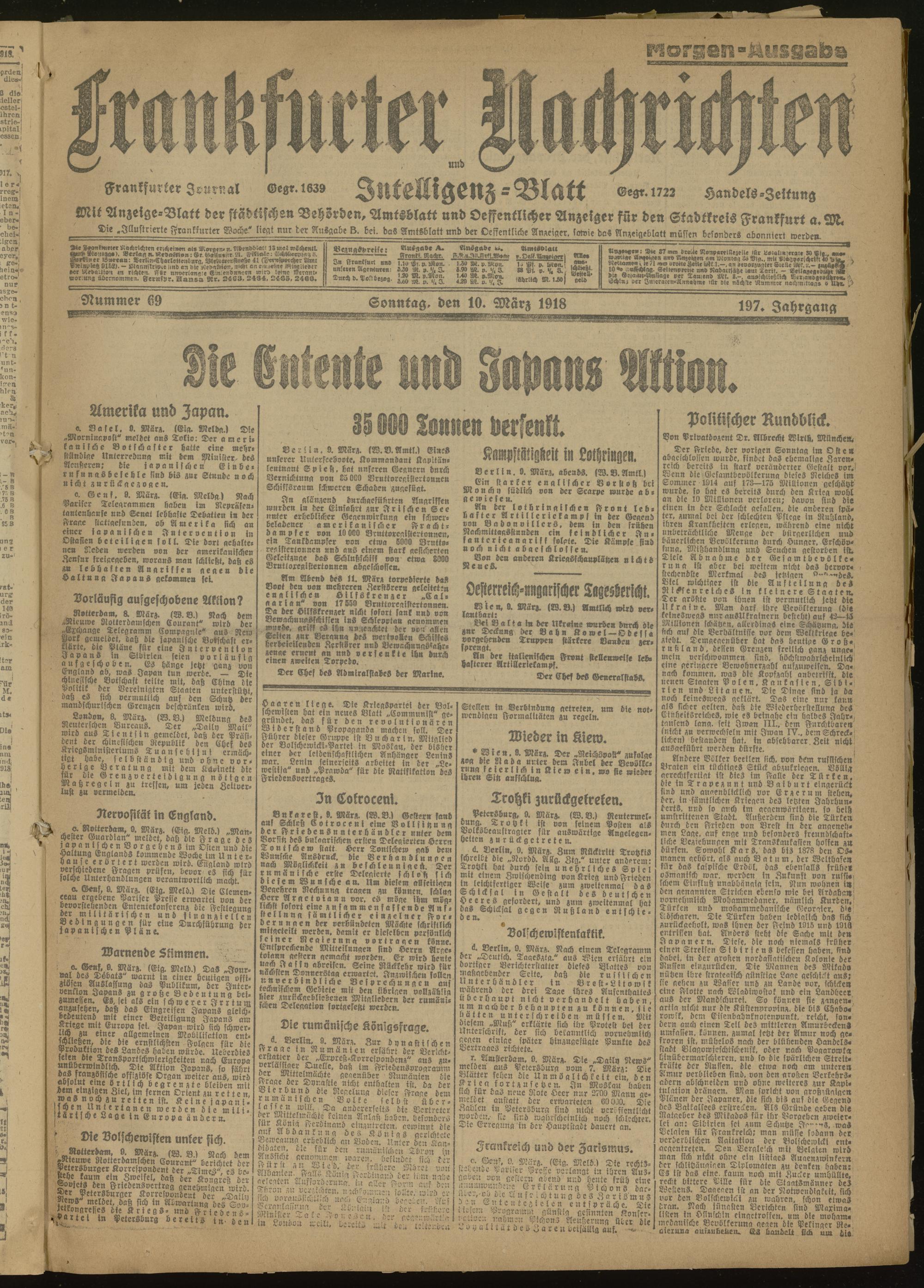 10.03.1918 Morgen-Ausgabe = Nr. 69