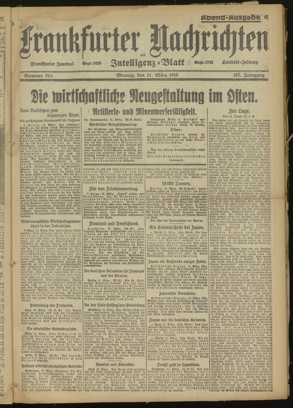 11.03.1918 Abend-Ausgabe = Nr. 70 b