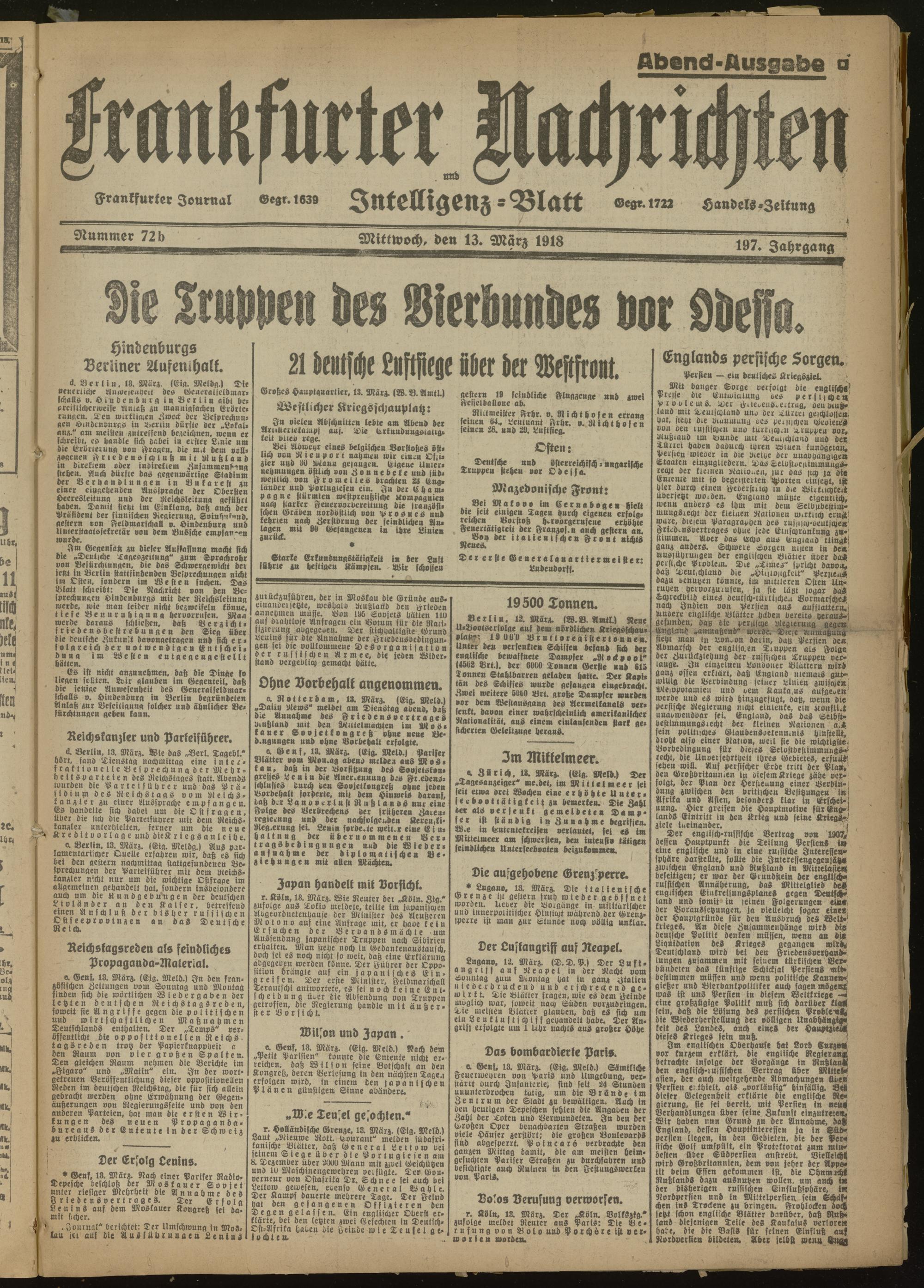 13.03.1918 Abend-Ausgabe = Nr. 72 b