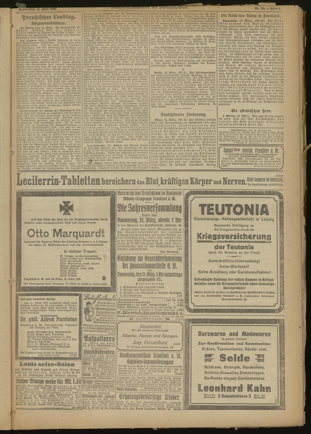 14.03.1918 Morgen-Ausgabe = Nr. 73 a