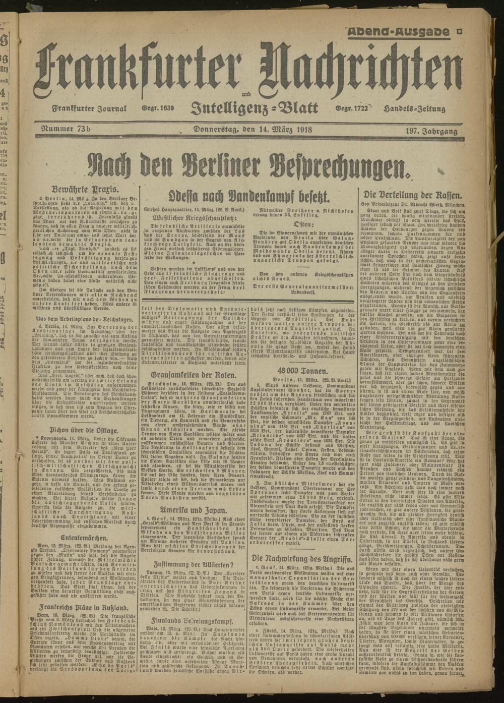 14.03.1918 Abend-Ausgabe = Nr. 73 b