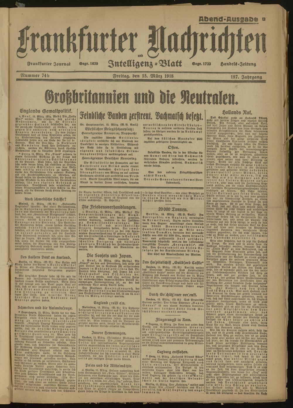 Frankfurter Nachrichten und Intelligenzblatt. 1914-1918