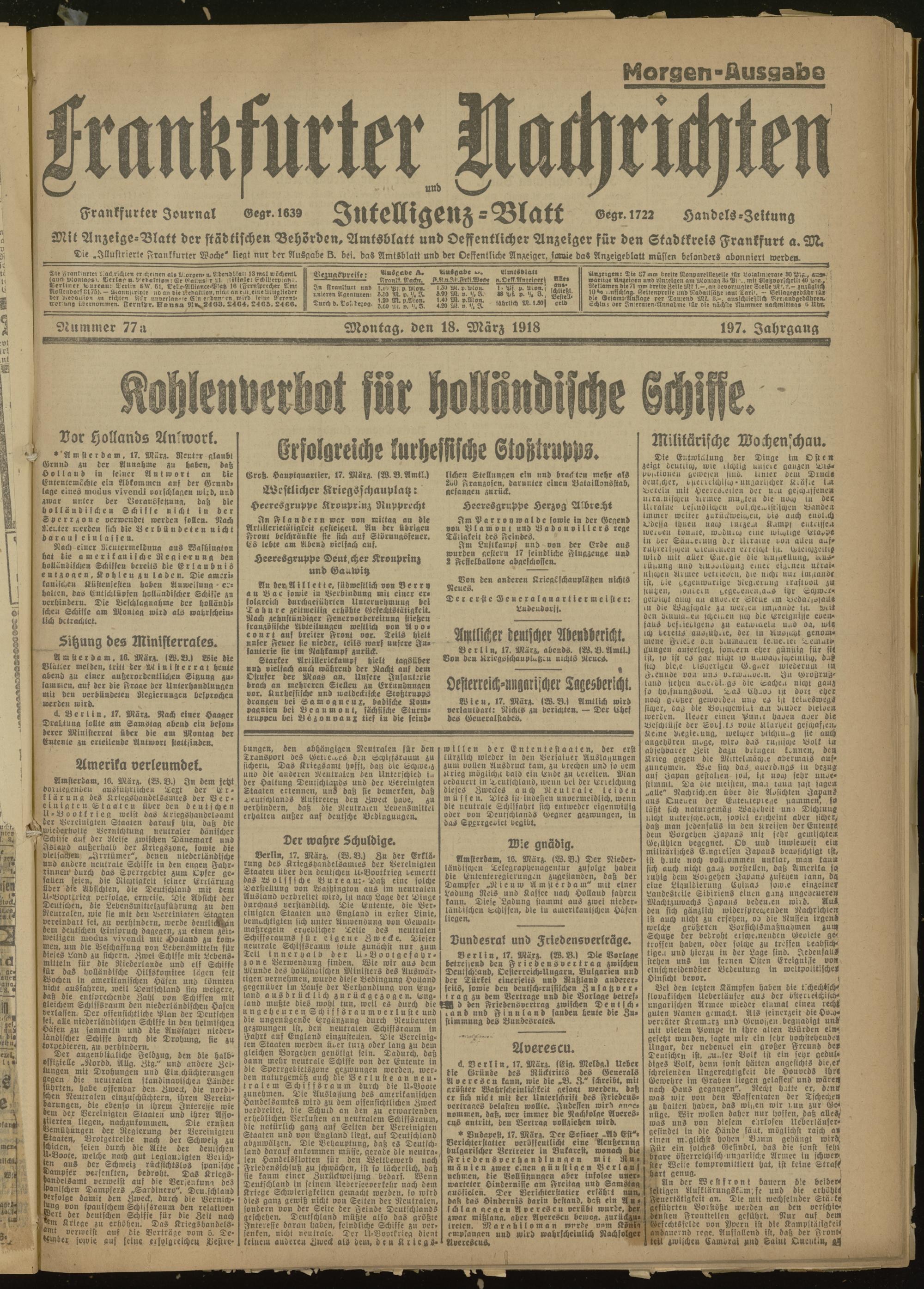 18.03.1918 Morgen-Ausgabe = Nr. 77 a