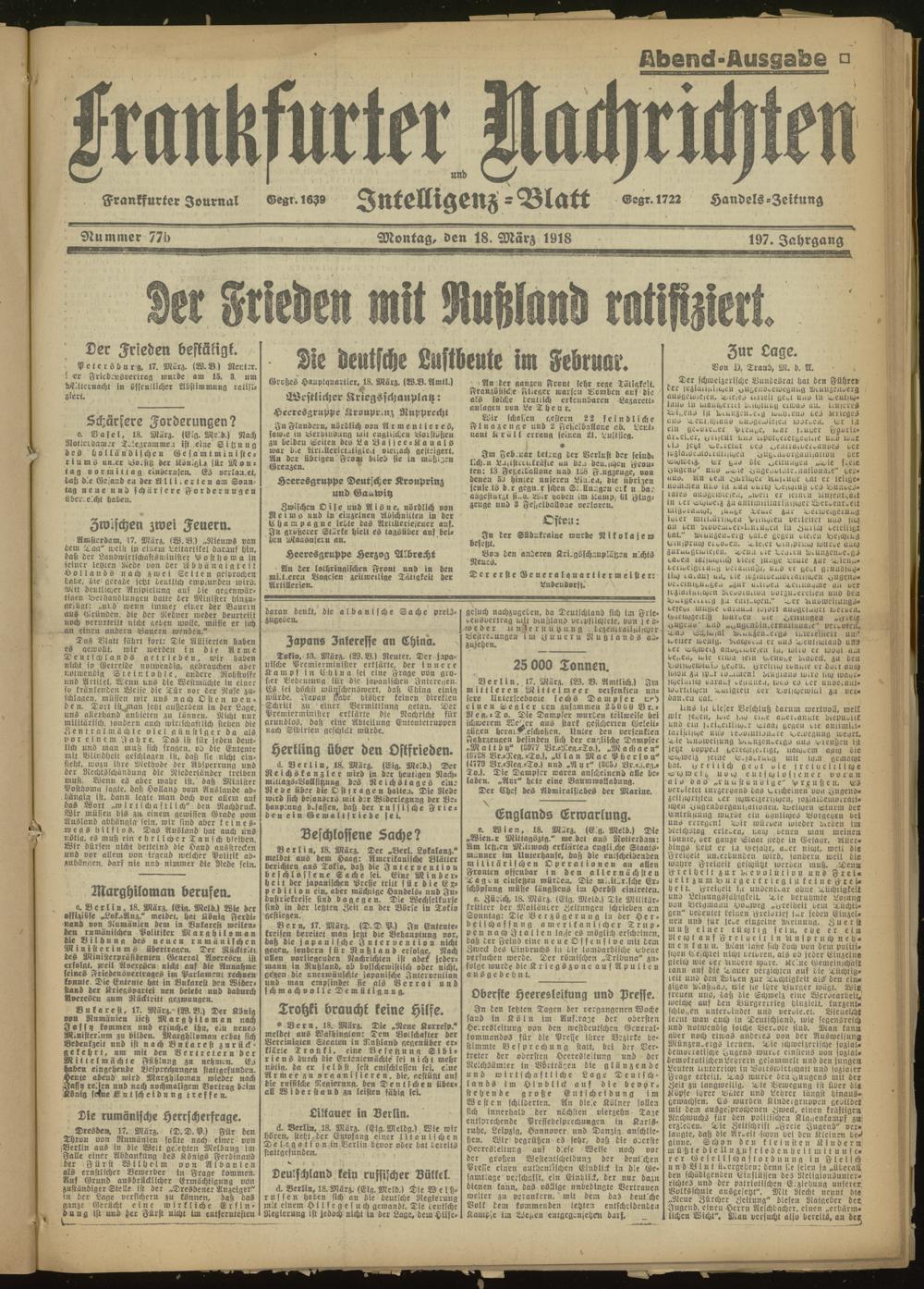 Frankfurter Nachrichten und Intelligenzblatt. 1914-1918