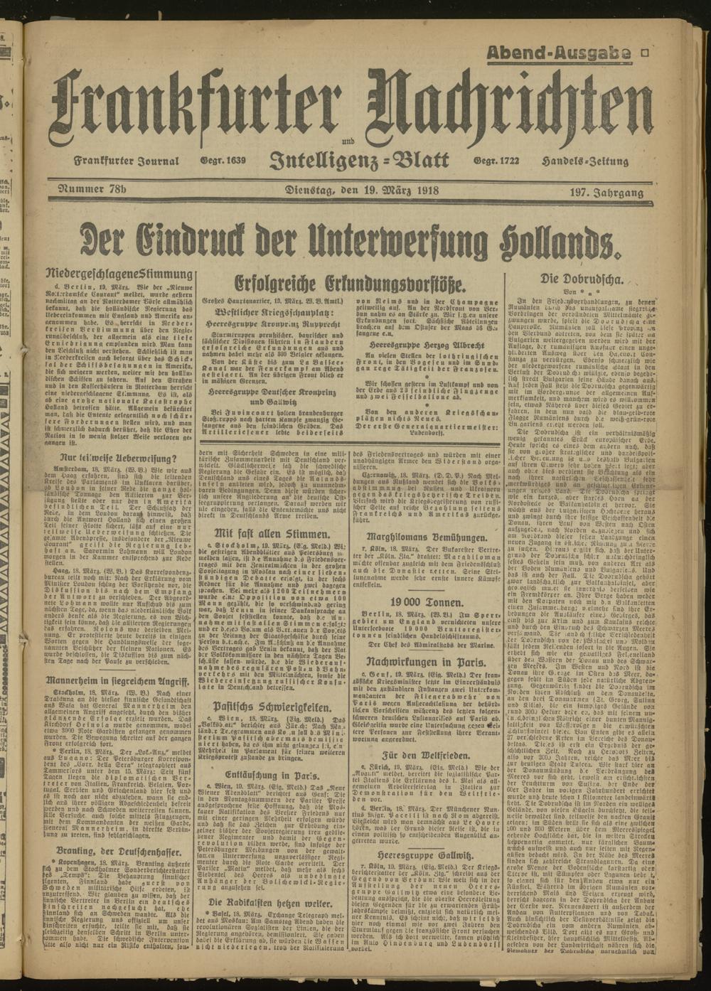 19.03.1918 Abend-Ausgabe = Nr. 78 b