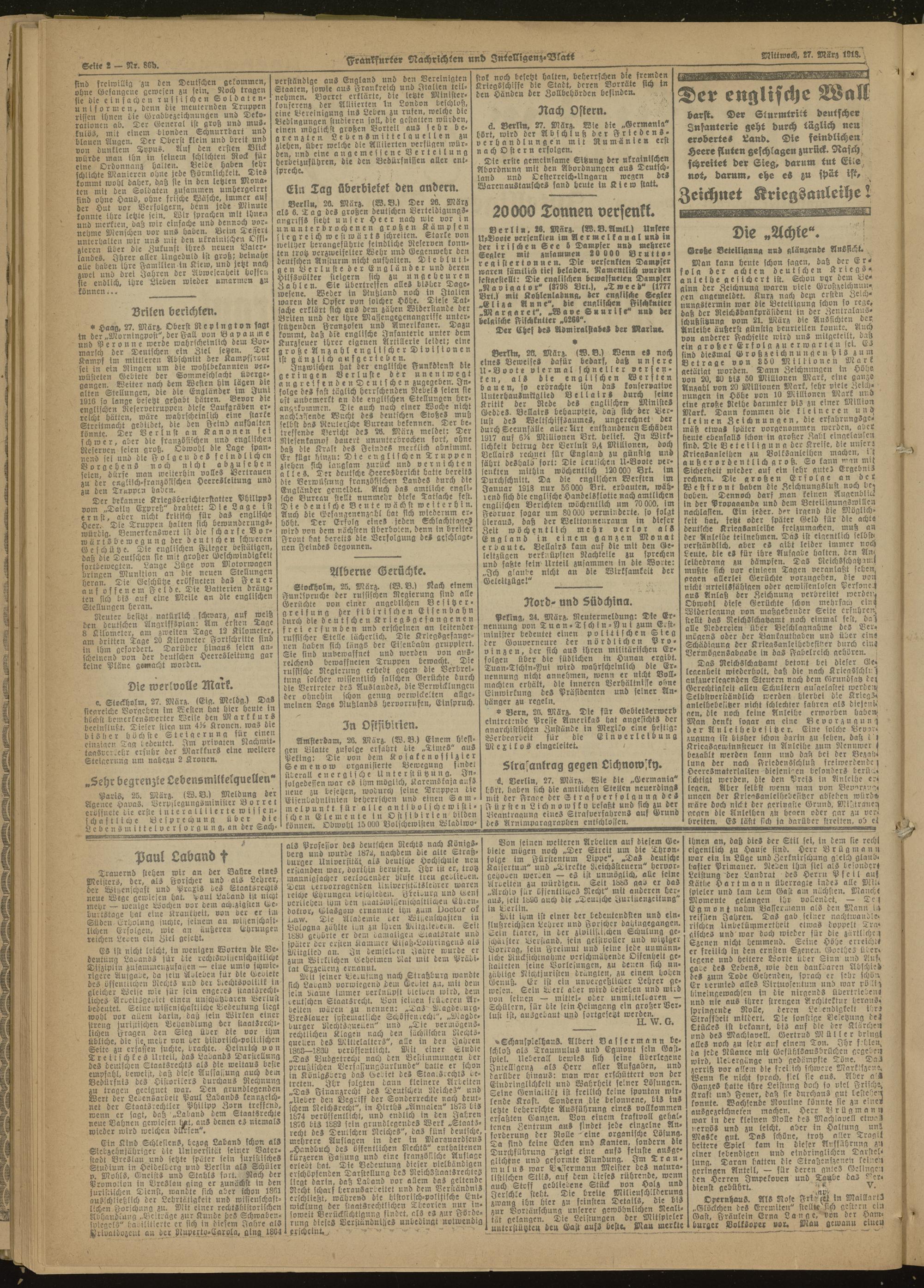 27.03.1918 Abend-Ausgabe = Nr. 86 b