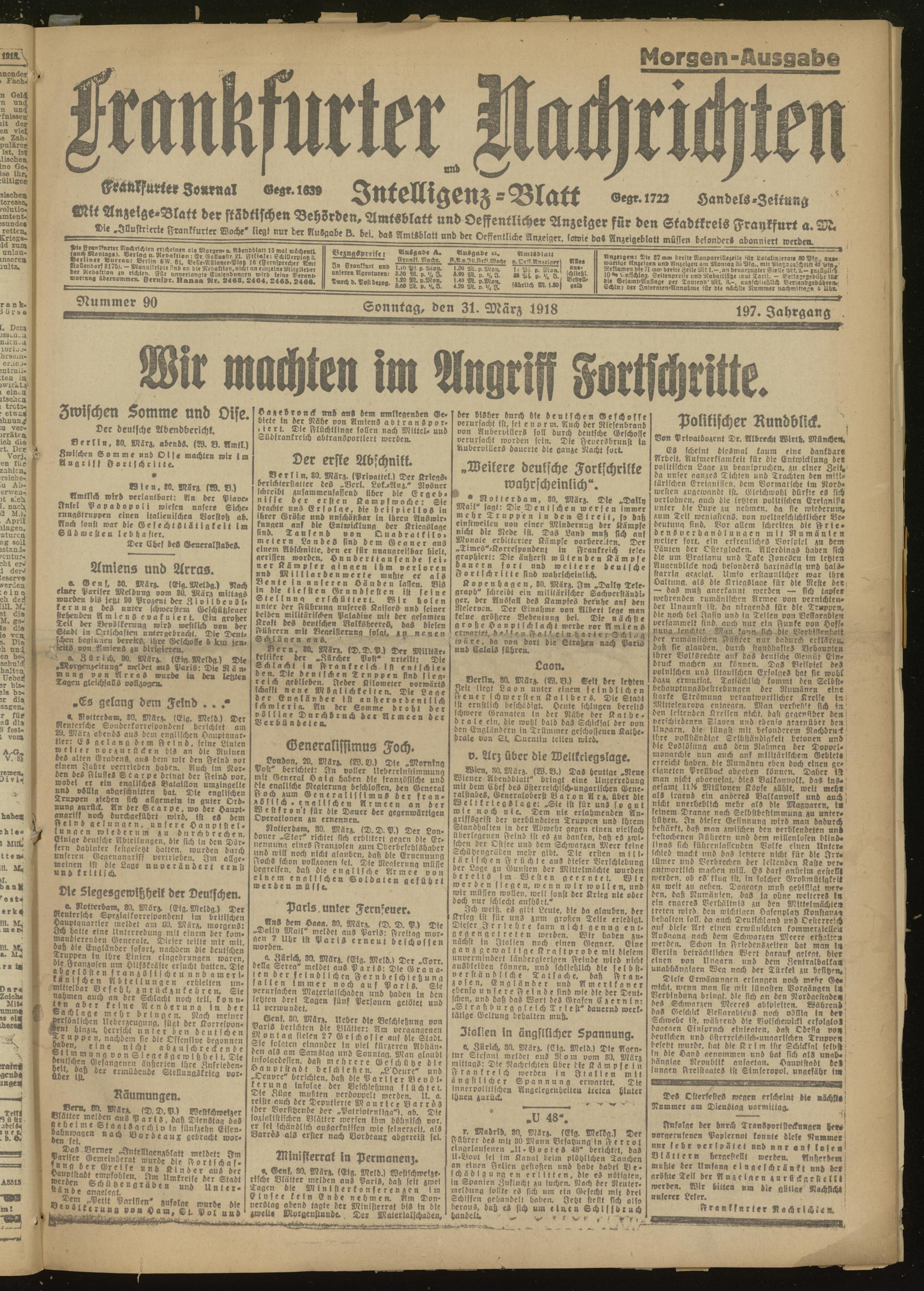 31.03.1918 Morgen-Ausgabe = Nr. 90