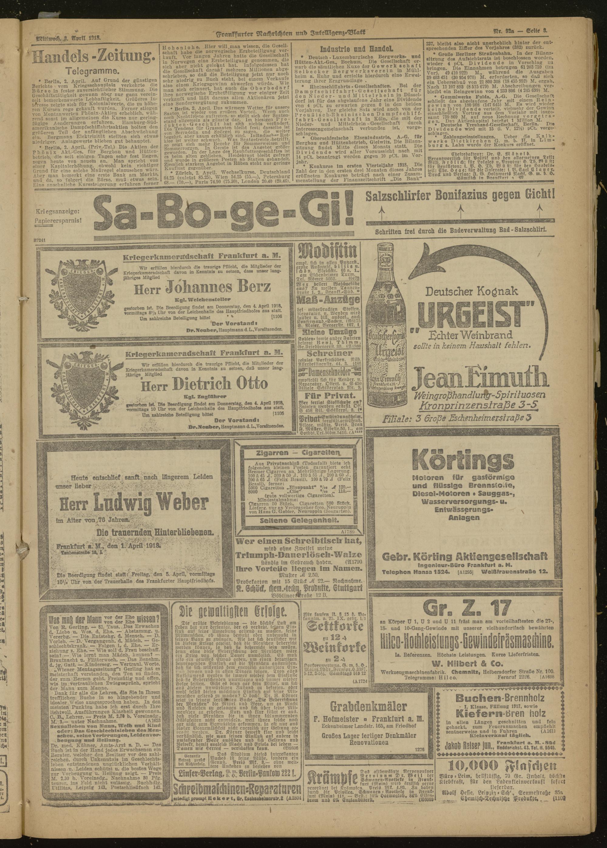03.04.1918 Morgen-Ausgabe = Nr. 92 a