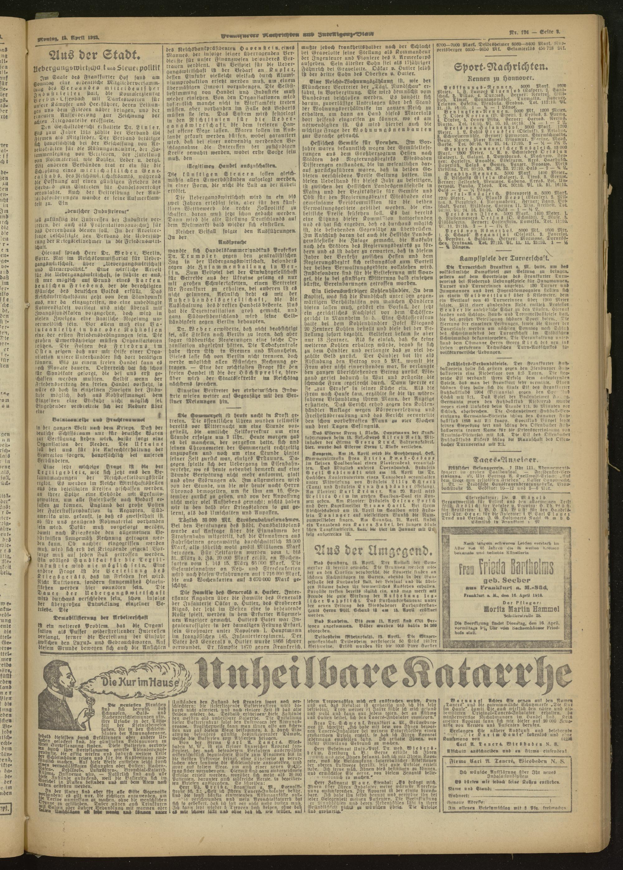 15.04.1918 Morgen-Ausgabe = Nr. 104