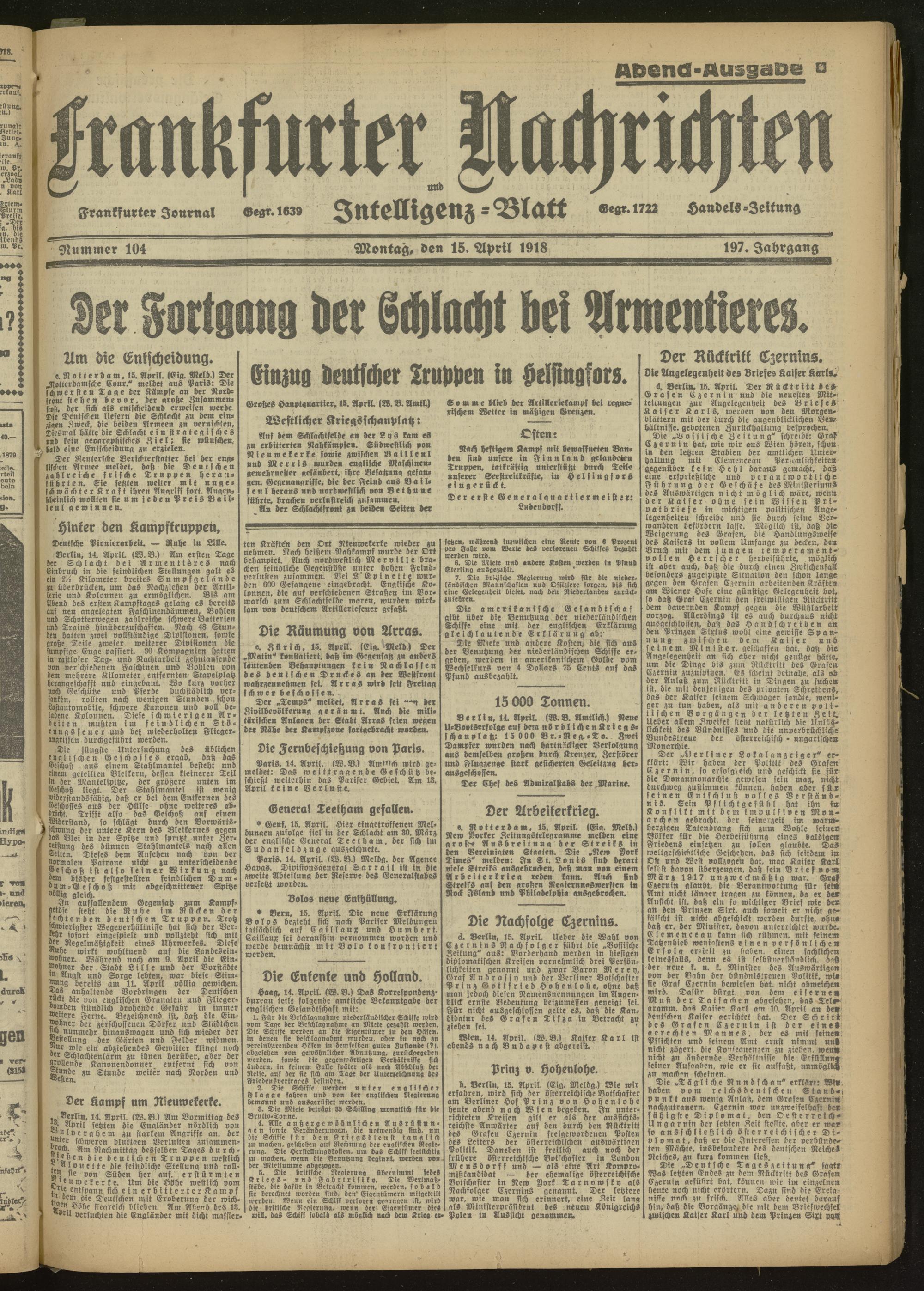15.04.1918 Abend-Ausgabe = Nr. 104