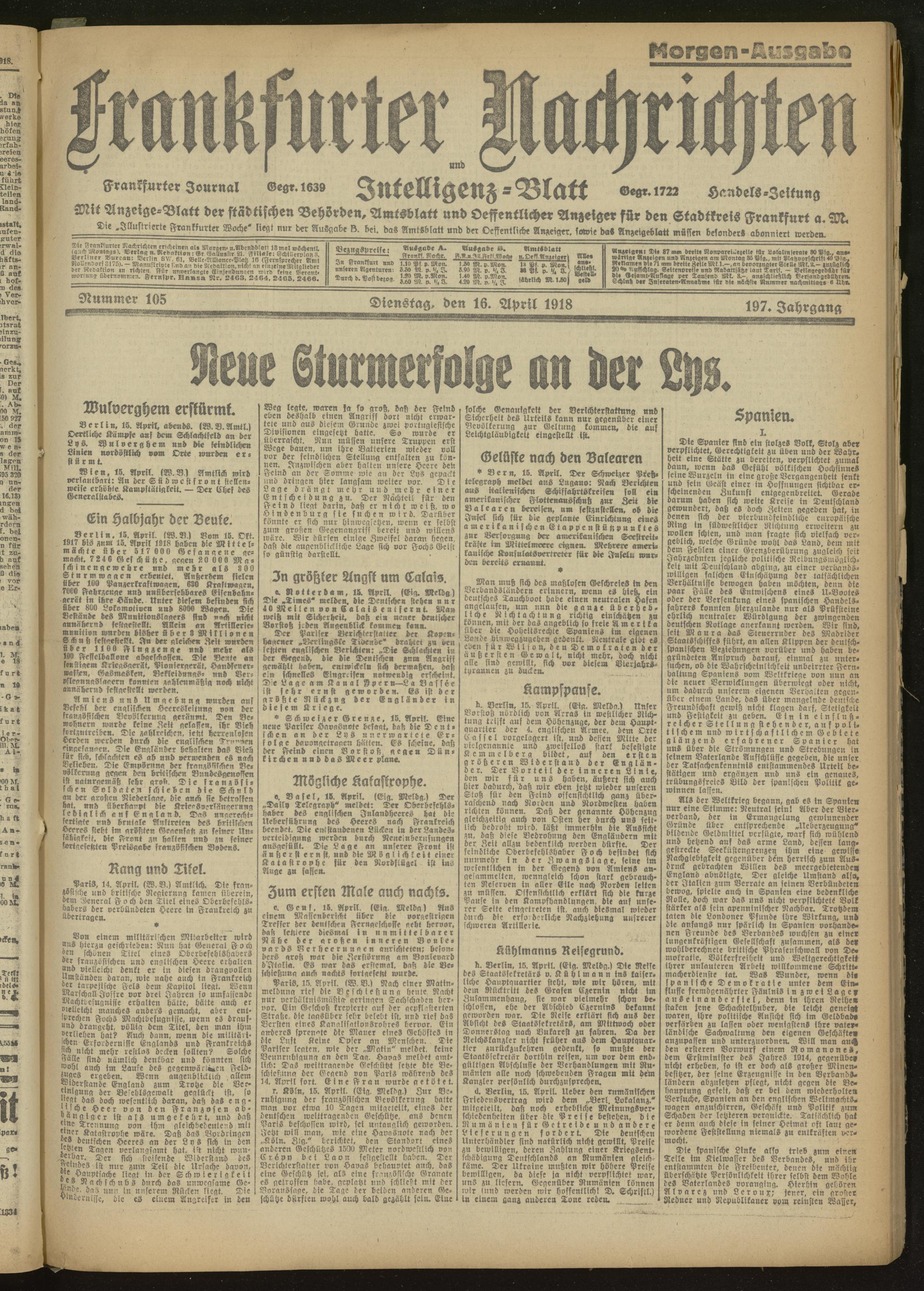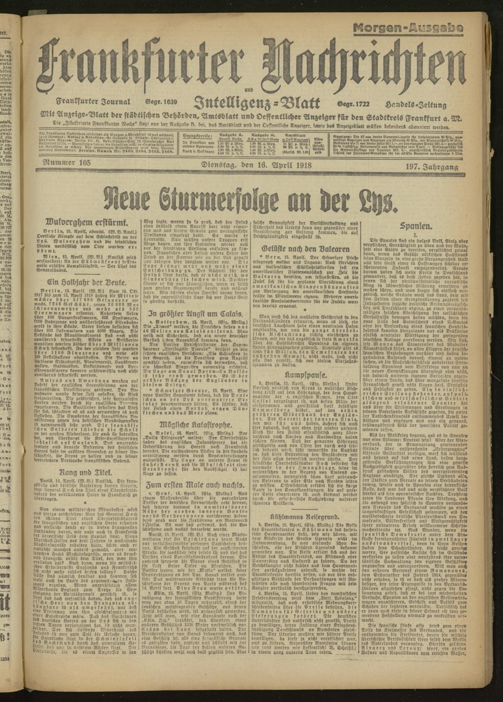 16.04.1918 Morgen-Ausgabe = Nr. 105