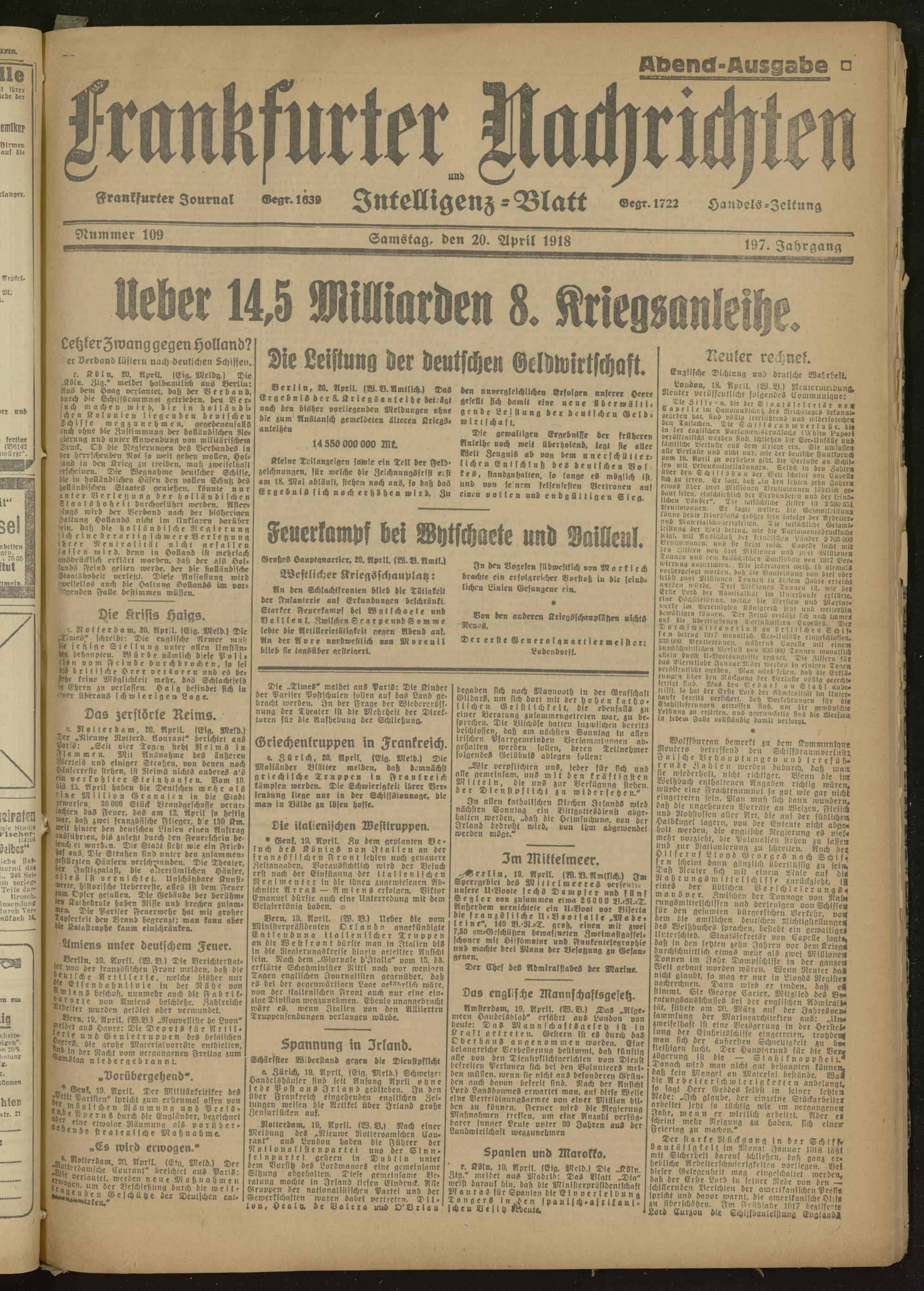 20.04.1918 Abend-Ausgabe = Nr. 109