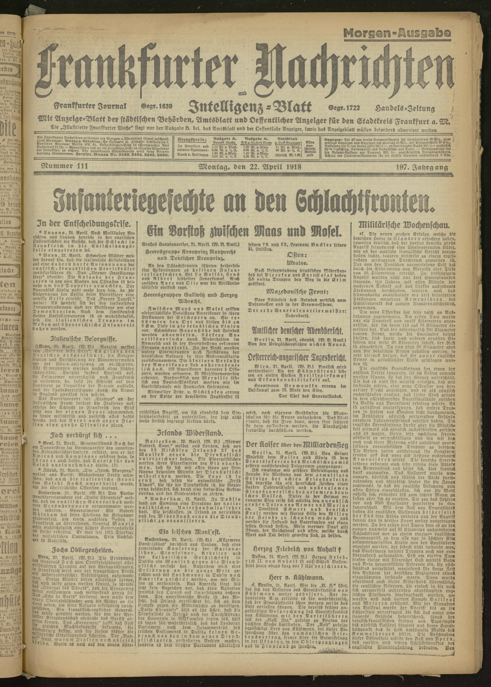 22.04.1918 Morgen-Ausgabe = Nr. 111